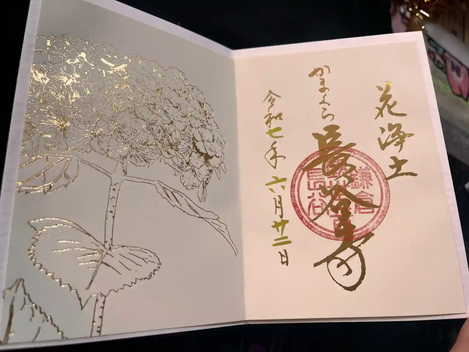 | 御朱印 | あり 右に海光山、真ん中に十一面大悲殿、左に長谷寺と書かれ、右上に坂東四番、真ん中に鎌倉観世音長谷、左下に社印が押されています。