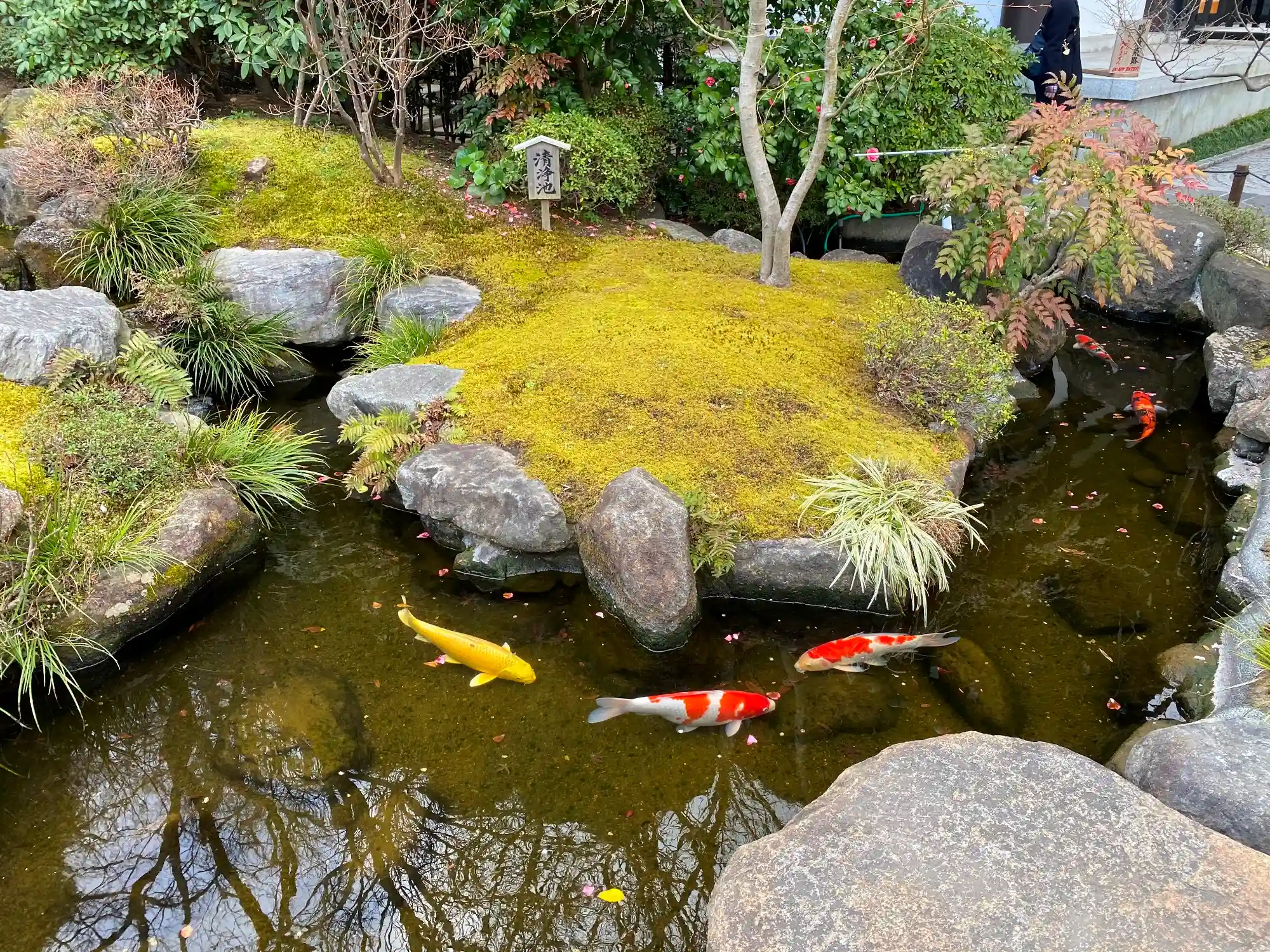 料金所を入ってすぐに庭園が見えるが、2月の花々が寂しい季節でもこの美しさ。この日すでに8つ目の寺社になるがベストの庭園。