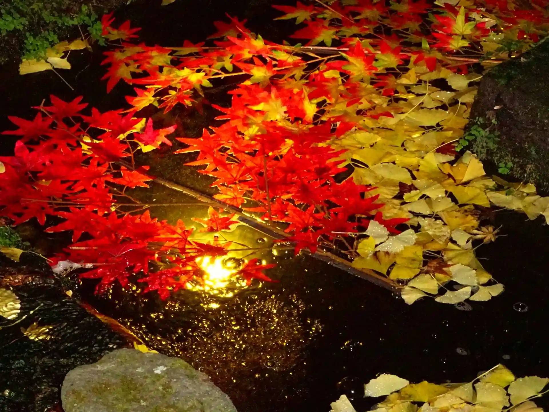 池に浮かべられた紅葉モミジ^^