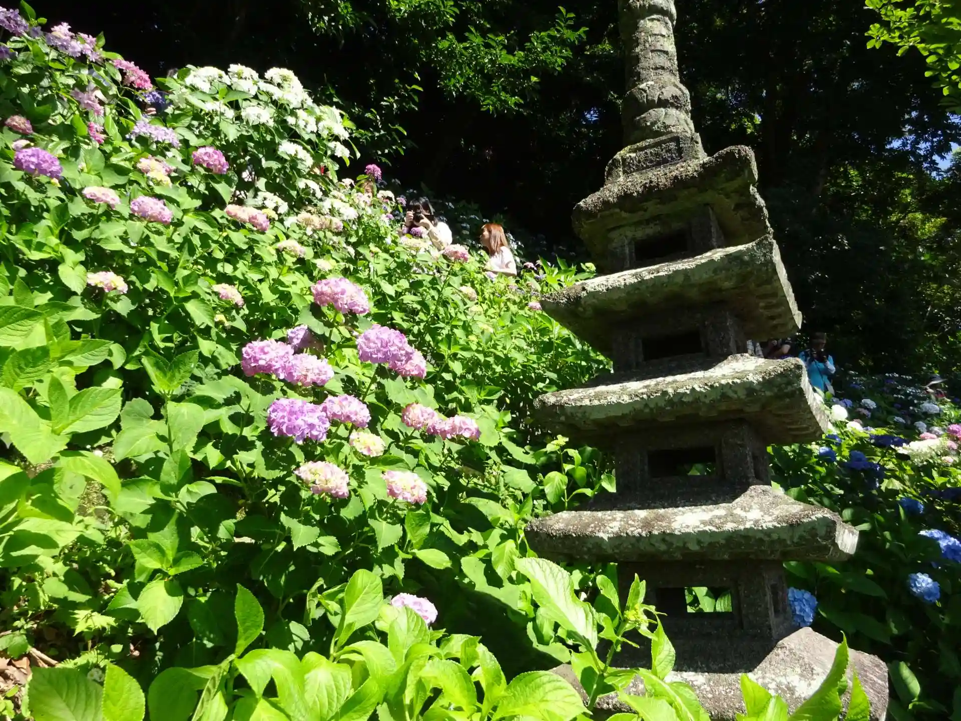 灯籠と紫陽花