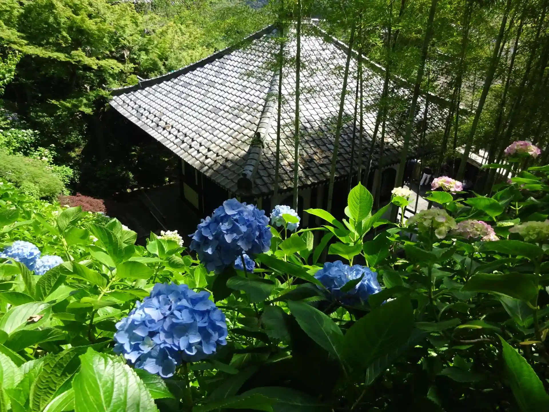 のんびり回廊巡り ここ長谷寺にしかないオリジナル紫陽花 青 白 赤・・・の色取り取りの花