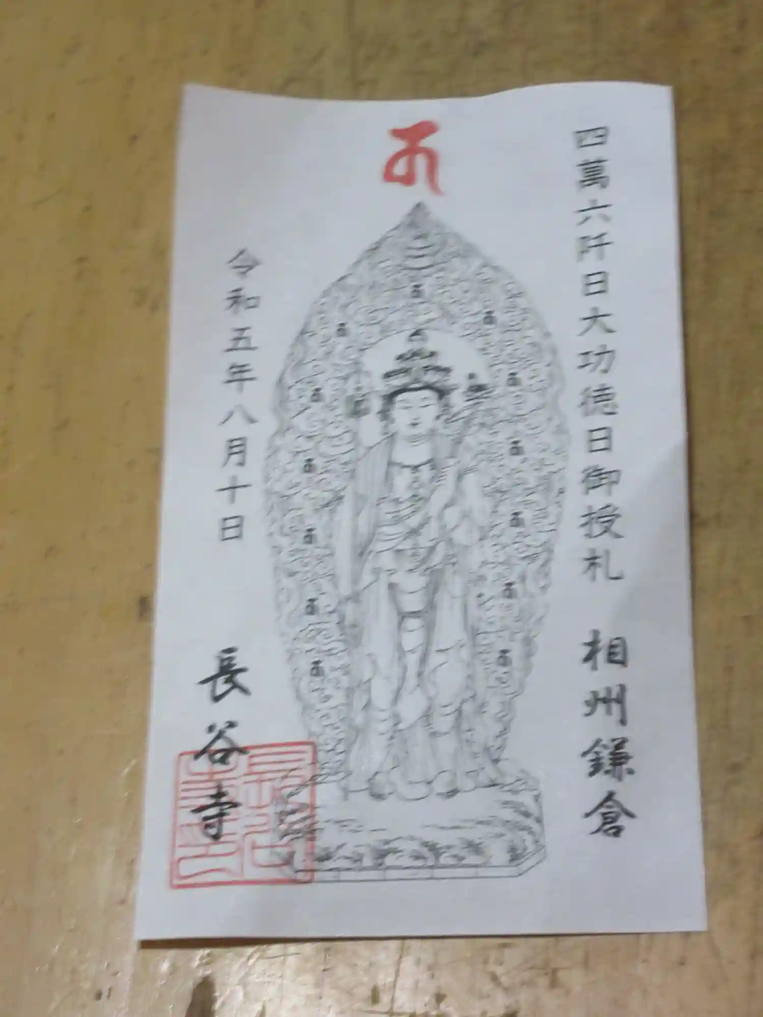 文字起こし ” 四萬六阡日大功徳御授札 相州鎌倉 令和五年八月十日 長谷寺 ”