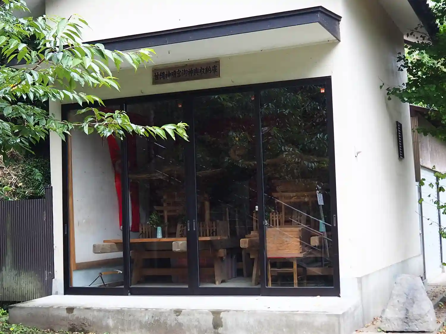 13-1) 下段境内、向かって右前方の神輿収納庫。