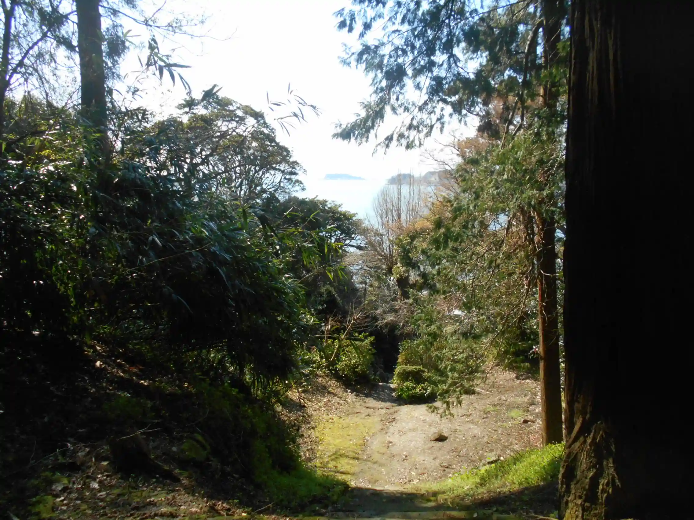 06) 階段を登りきって振り返る。正面は、江の島 ~ 稲村ガ崎方向。