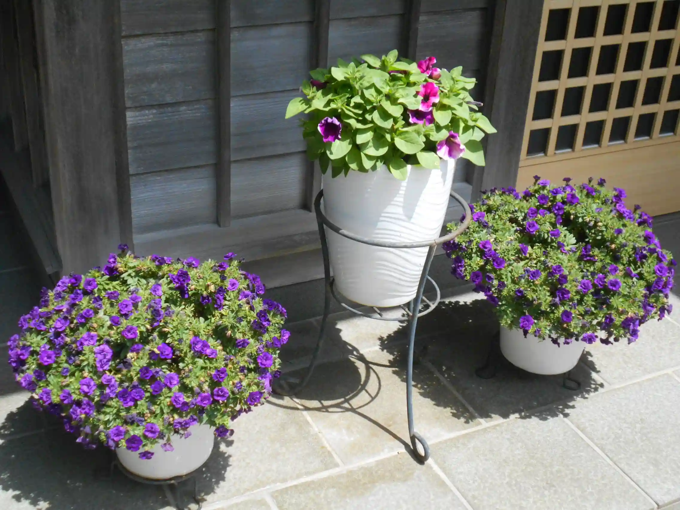 04-1) 庫裡玄関 / 寺務所 周辺の、鉢植えアレンジメント。