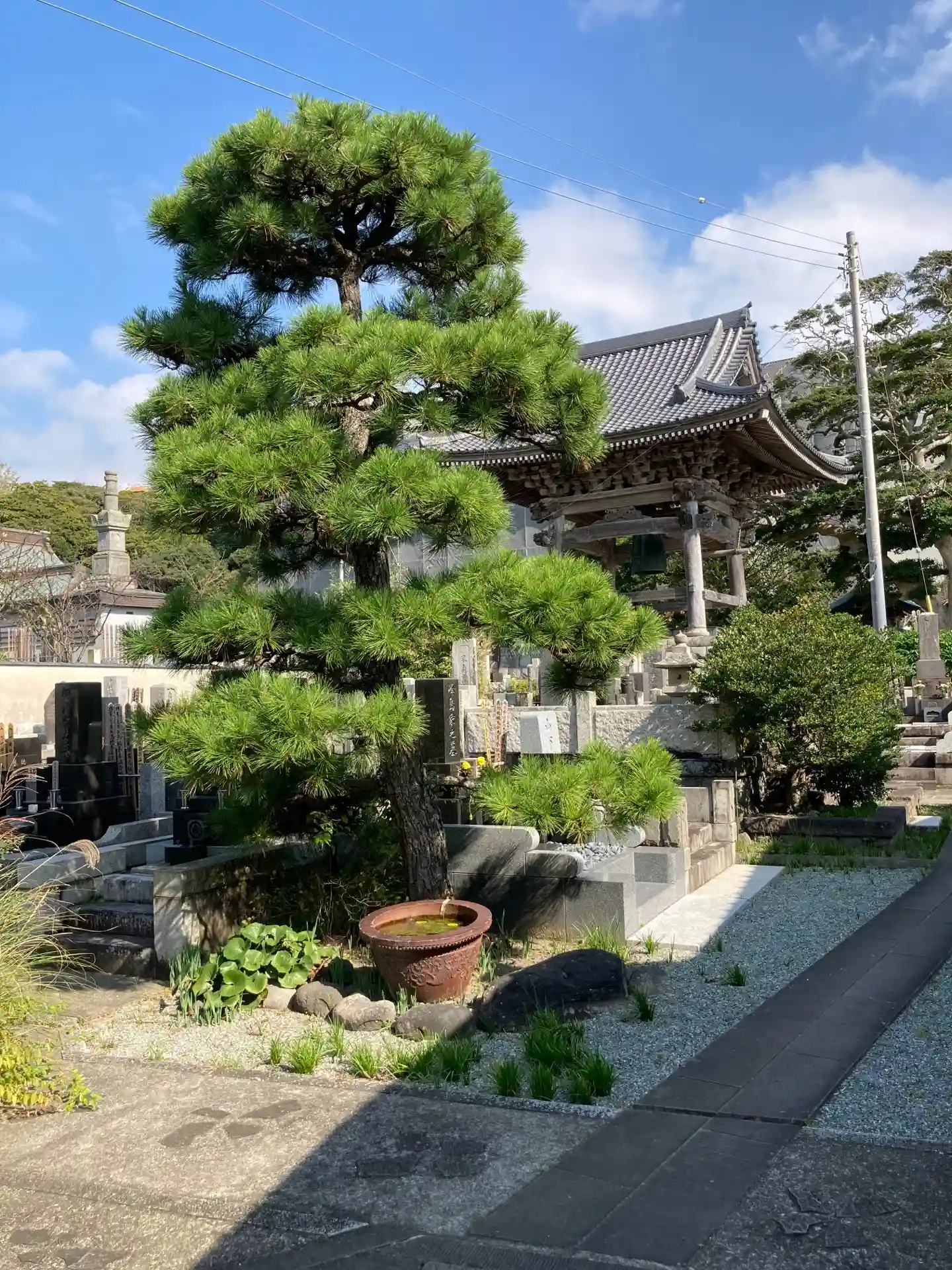 後方は光明寺の鐘楼。