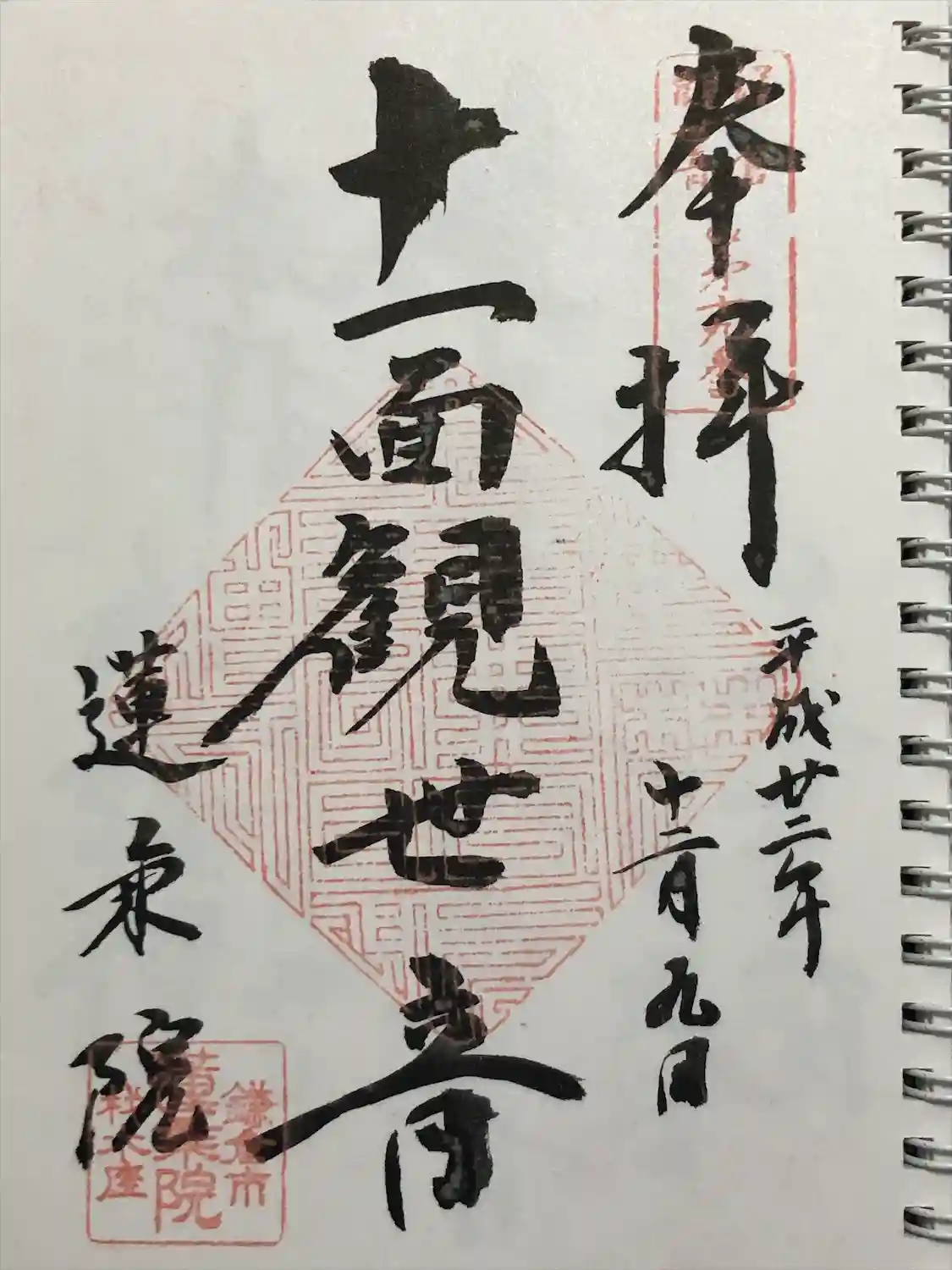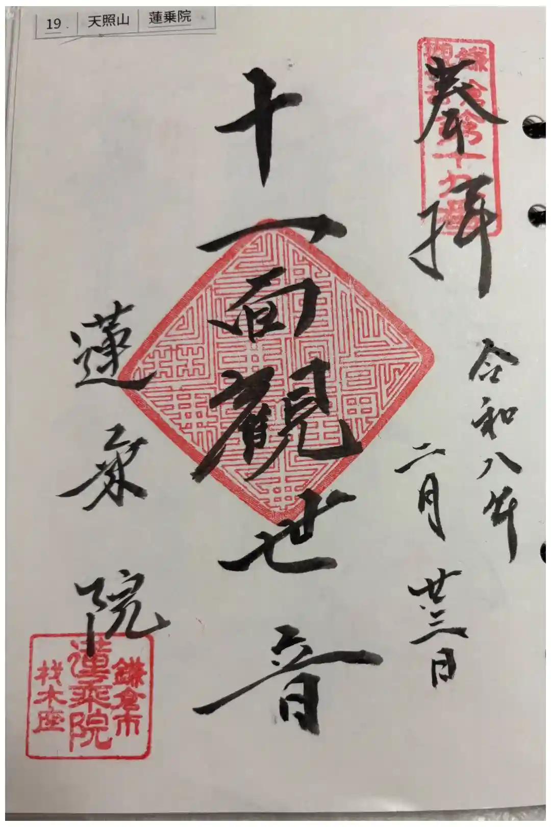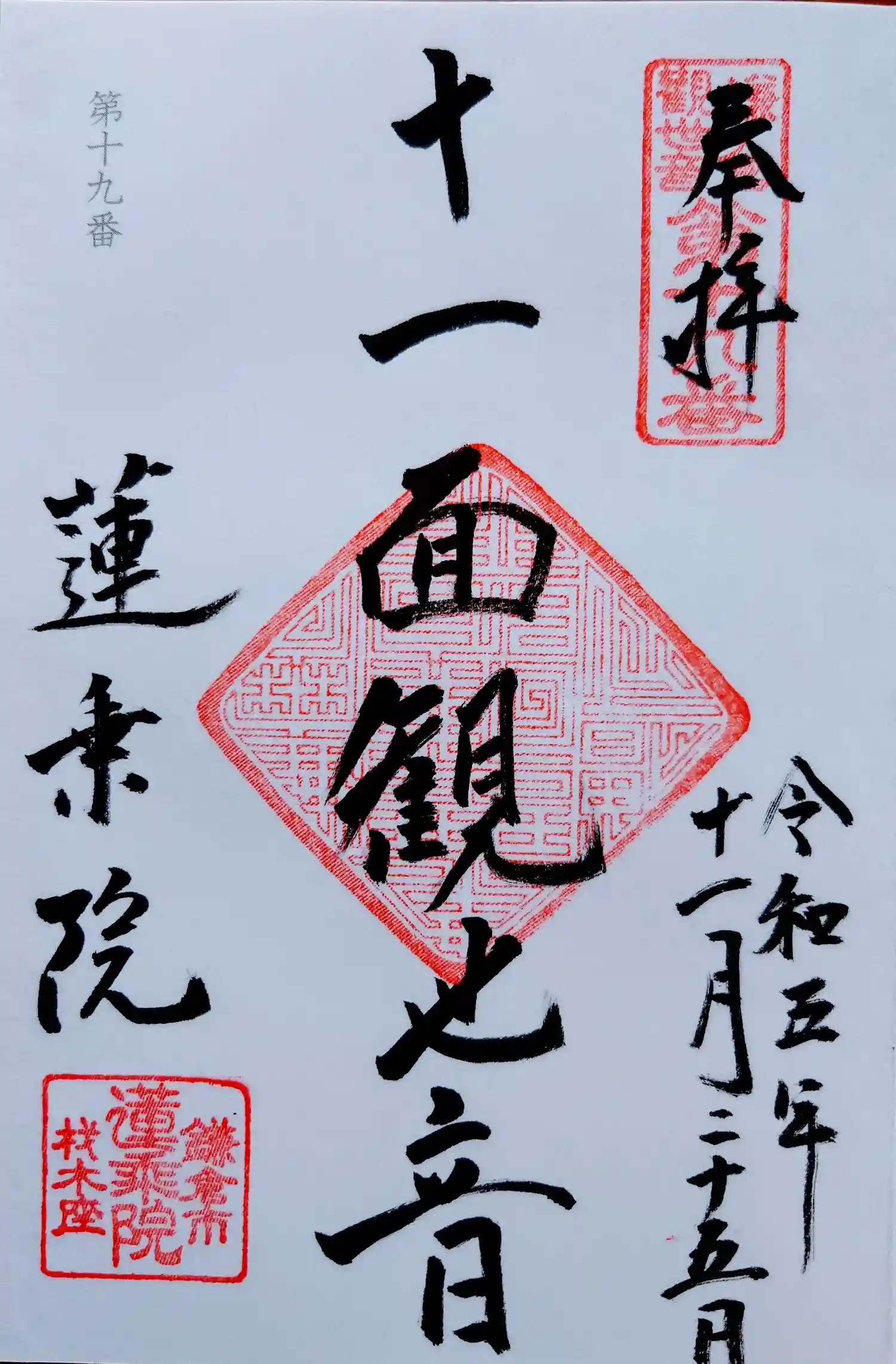 鎌倉三十三観音19番札所、蓮乗院様「十一面観音」様の御朱印です。