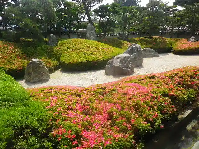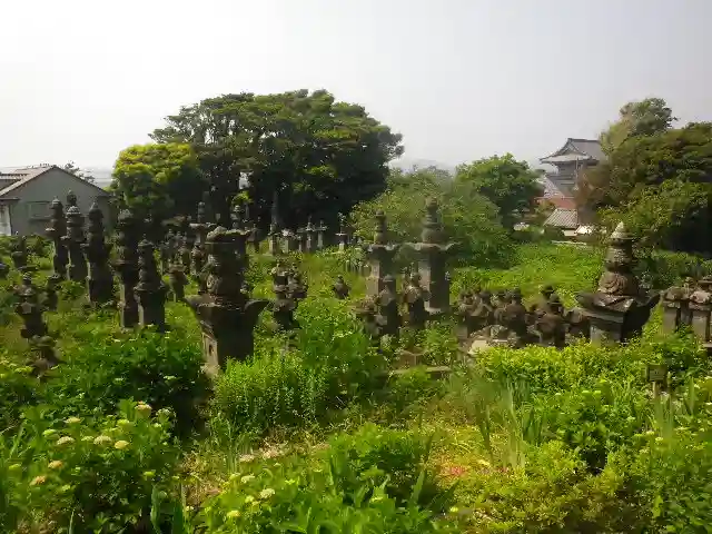 墓所前の道に沿った地元有志整備の花壇。