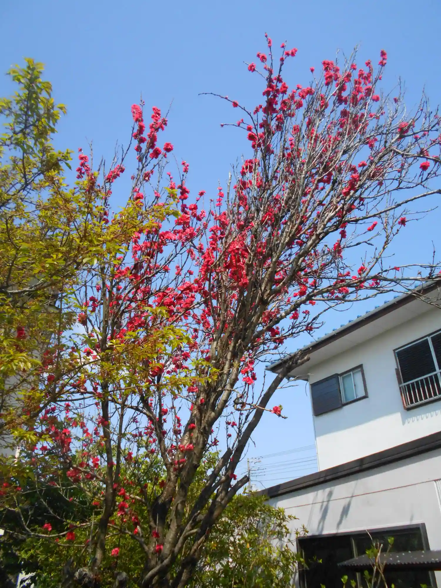 毎回のように撮ってきた 桃か? 緋桃か??? 未だ名を識らぬ赤い花が咲く植栽。