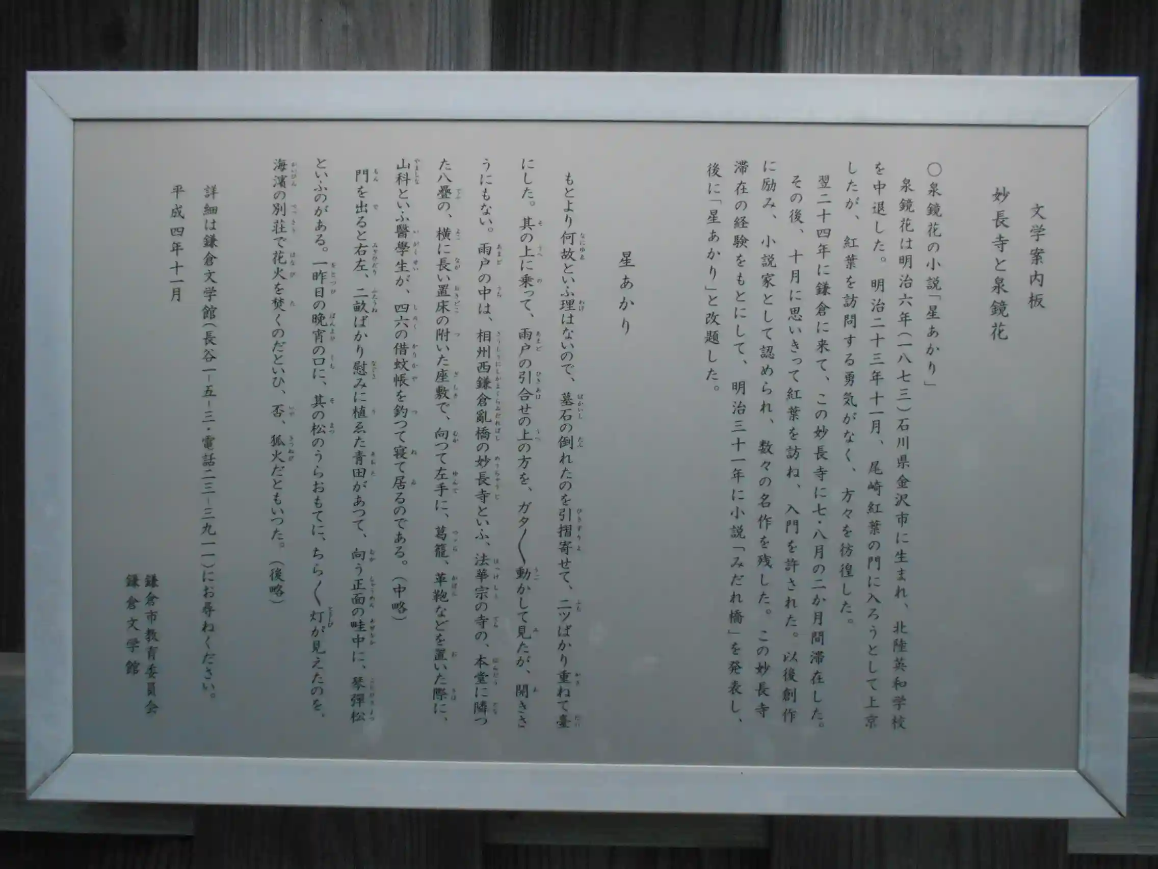 02) ” 文学案内板 妙長寺と泉鏡花 ”