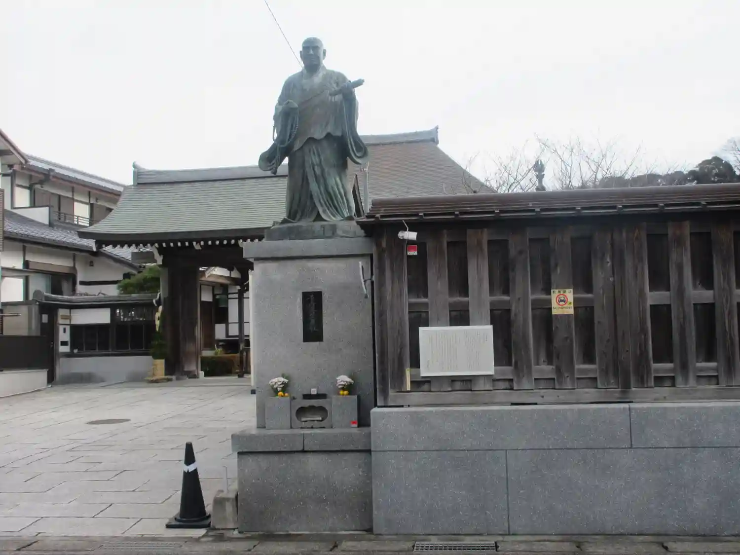 海潮山妙長寺入口前の日蓮聖人像