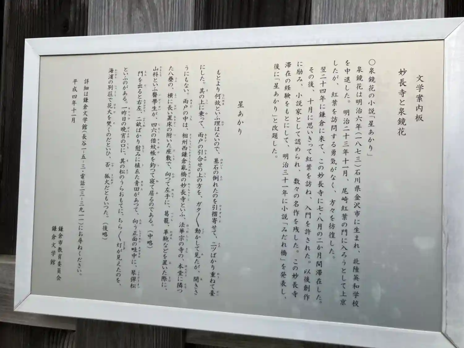02) 文学案内板 妙長寺と泉鏡花