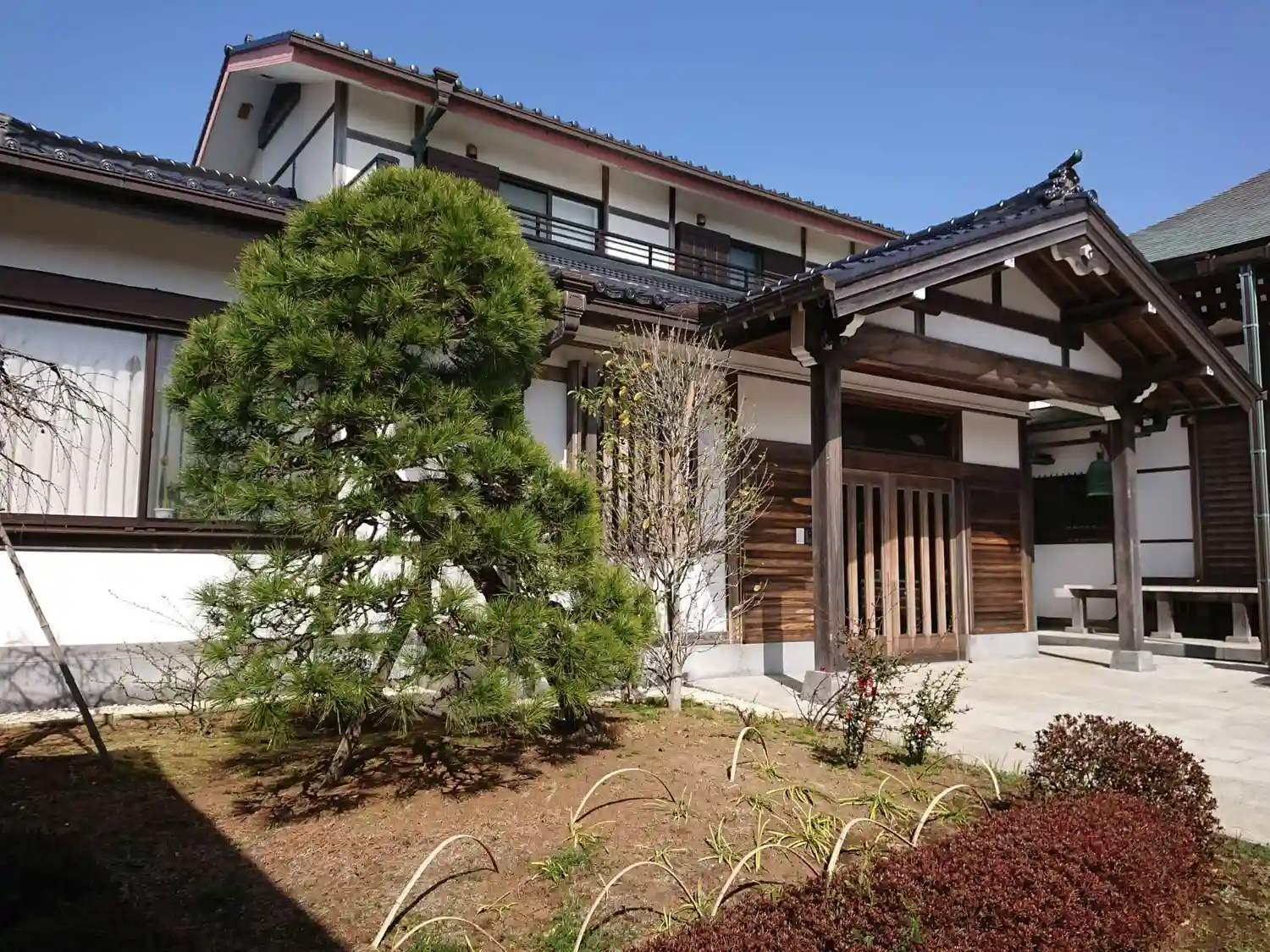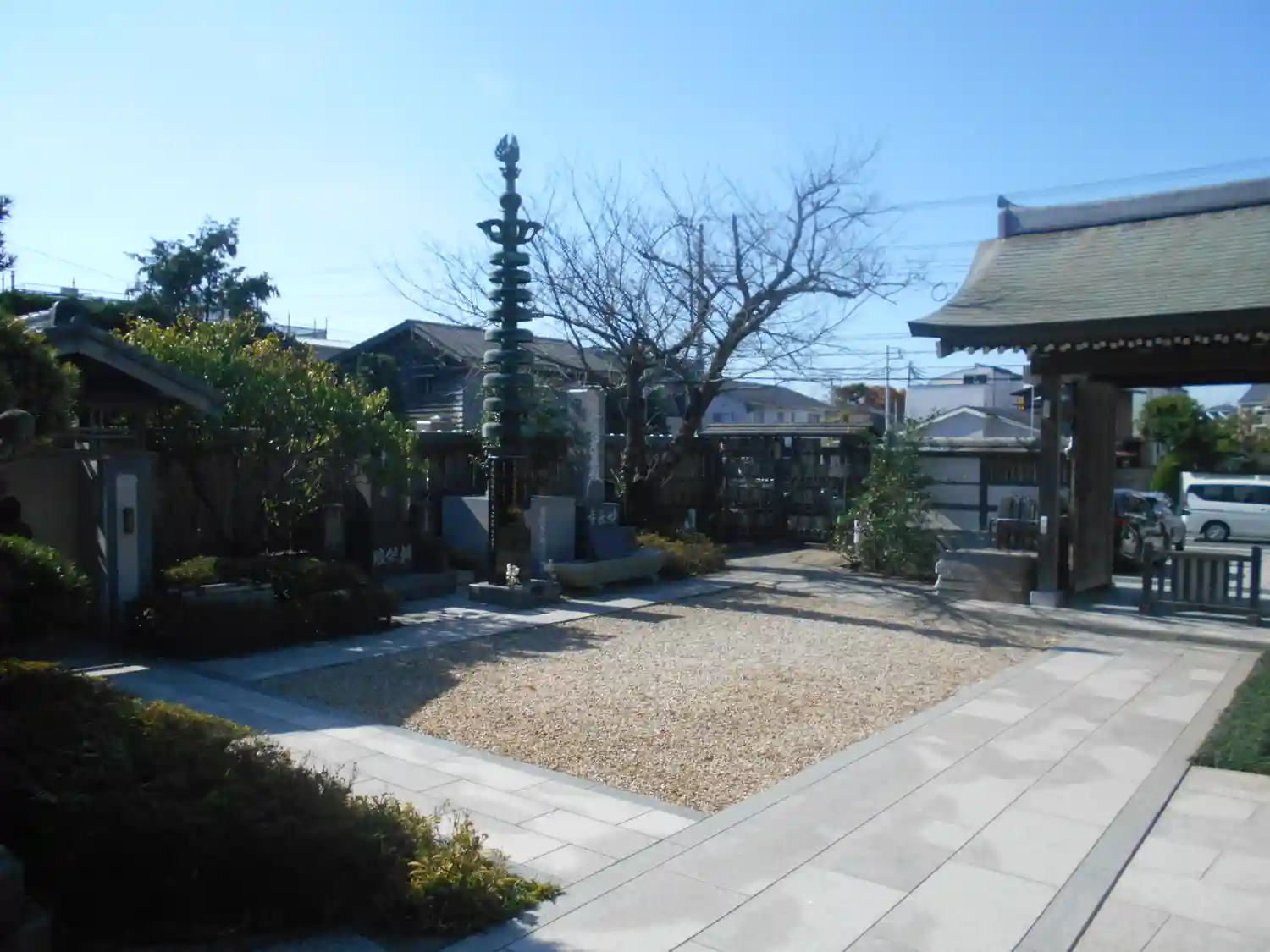 02) 本堂前から振り返る(= 山門を潜って直ぐ右方)