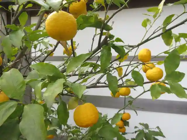 02-1) 日蓮宗の紋なので植えている寺院が多い、橘の植栽。