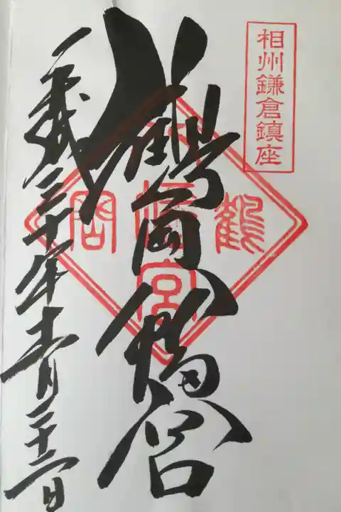 鶴岡八幡宮の御朱印。平日にもかかわらず、社務所前には10数人が並んでました。
