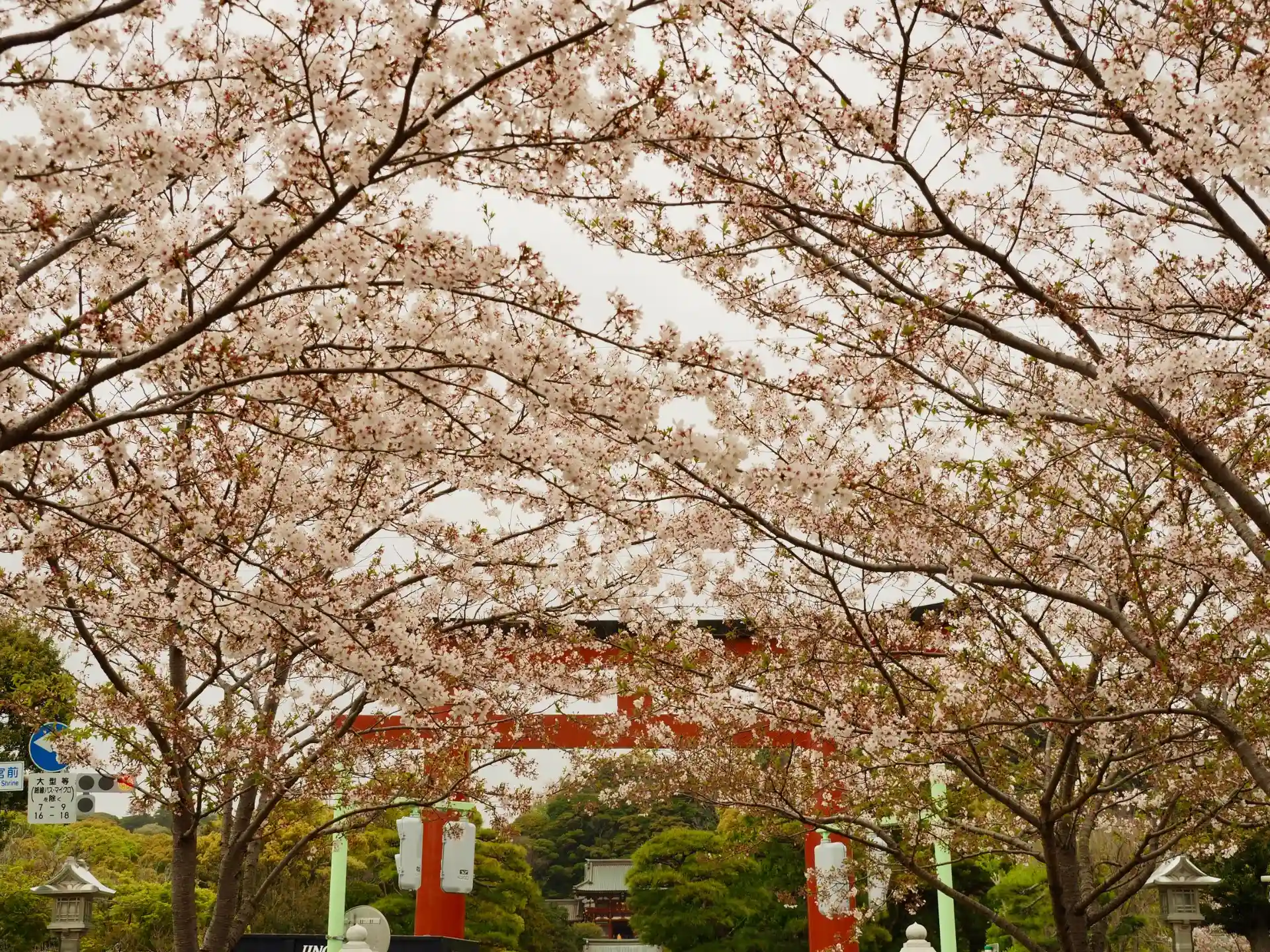 桜咲く鶴岡八幡宮