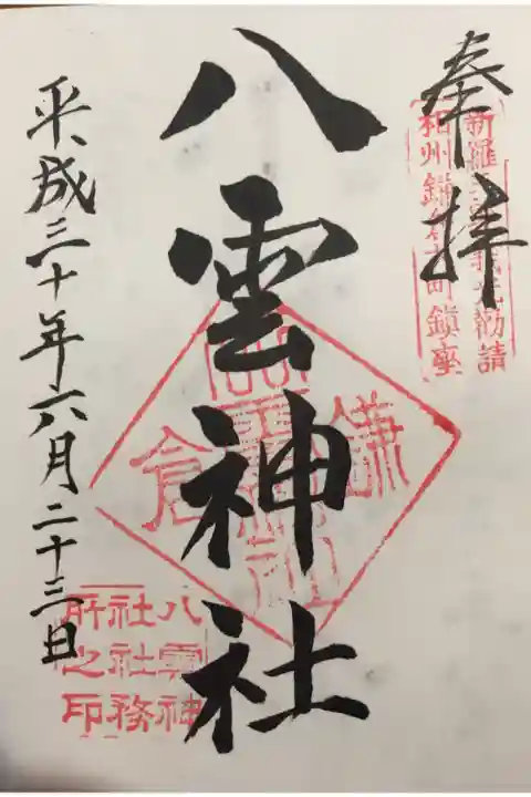 河内源氏である源義光が、京都の八坂神社を勧請したとのことです。