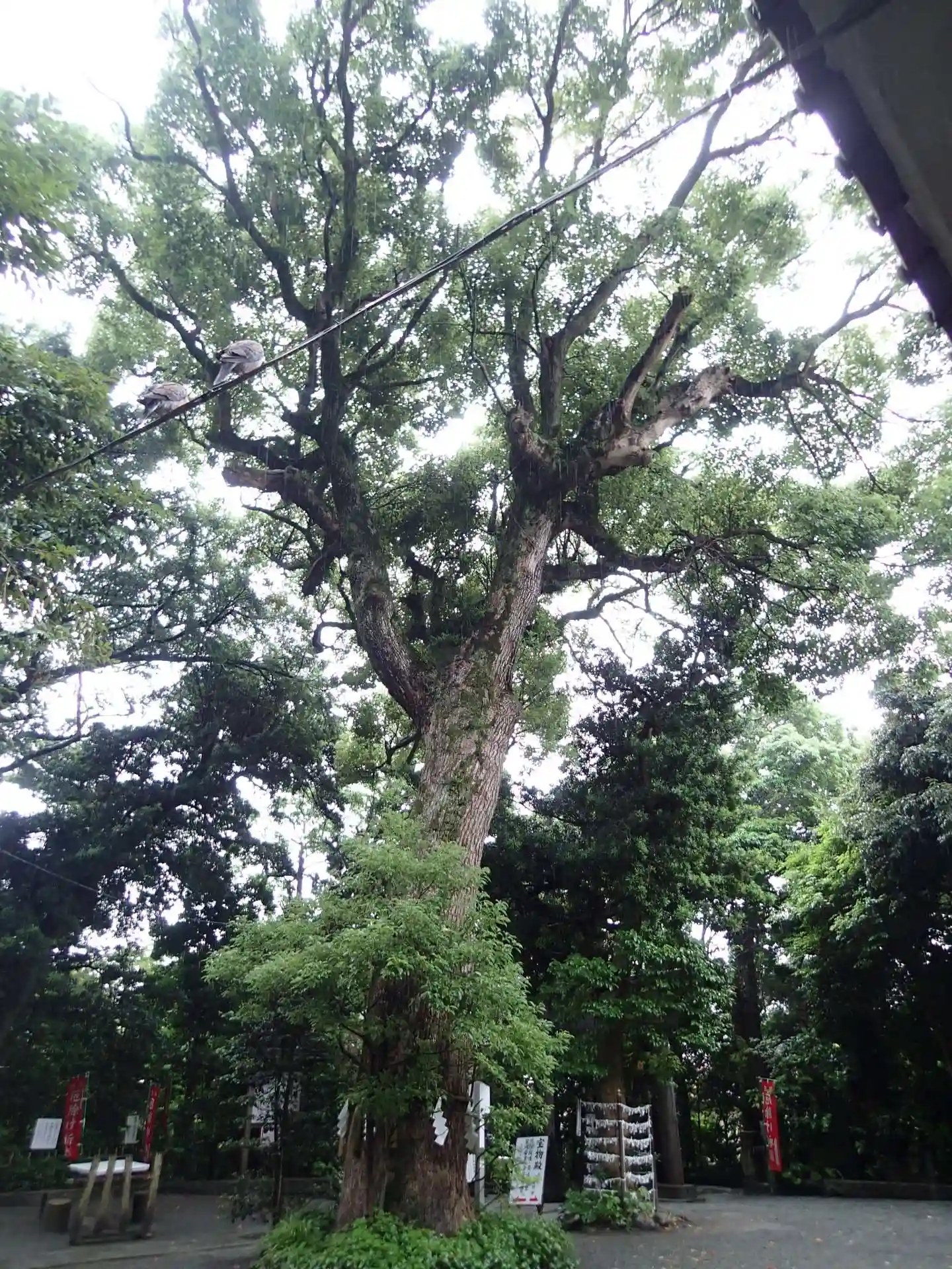 境内の御神木の根本に、源義光=新羅三郎の手玉石という、丸い力石のような石があります。
