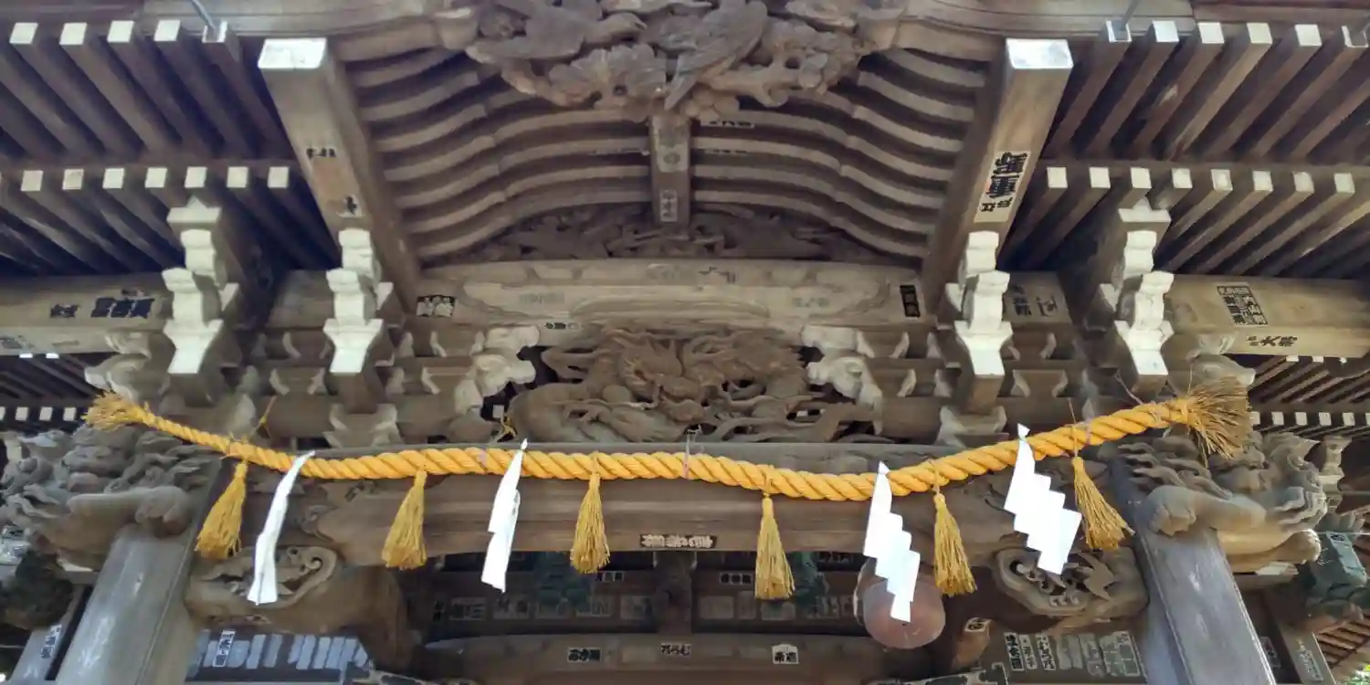 拝殿正面。梁などの彫刻が凝っていて美しい。