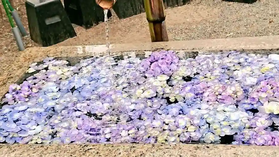 こちらにも花手水がありました