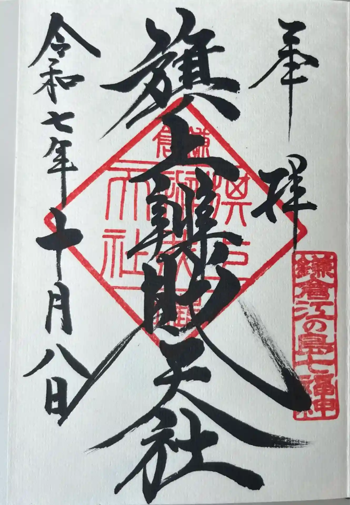 鶴岡八幡宮の三の鳥居をくぐり、まずこちらにお詣りしました。書き置きの御朱印をいただきました。
