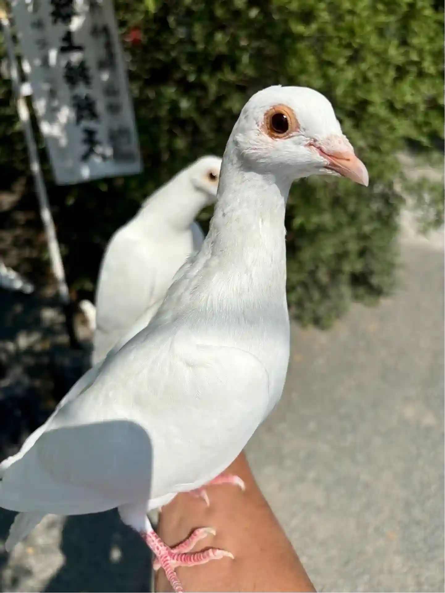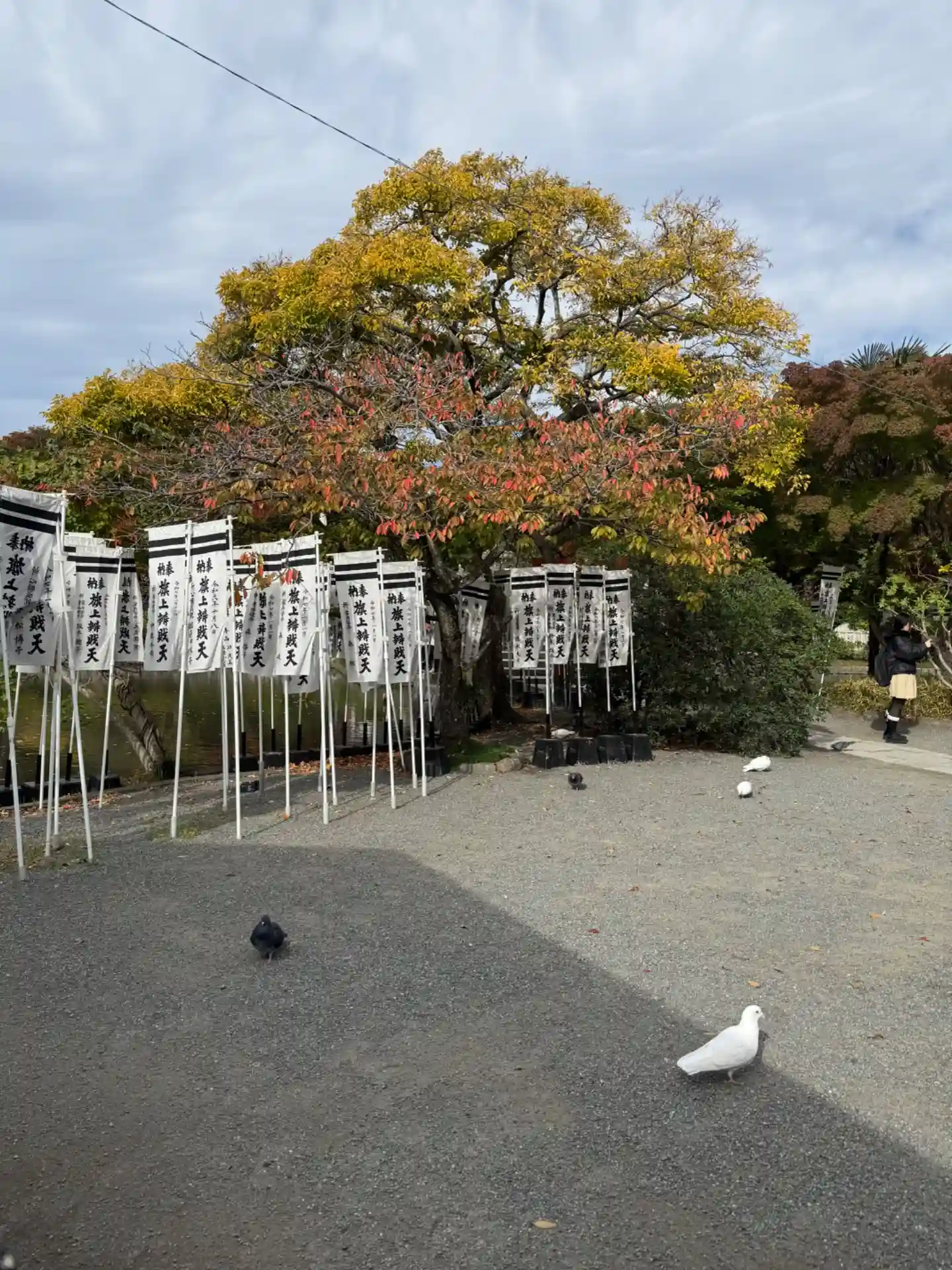 まっっっしろいハトがてててと歩いており、神さまの使いとしてそち…