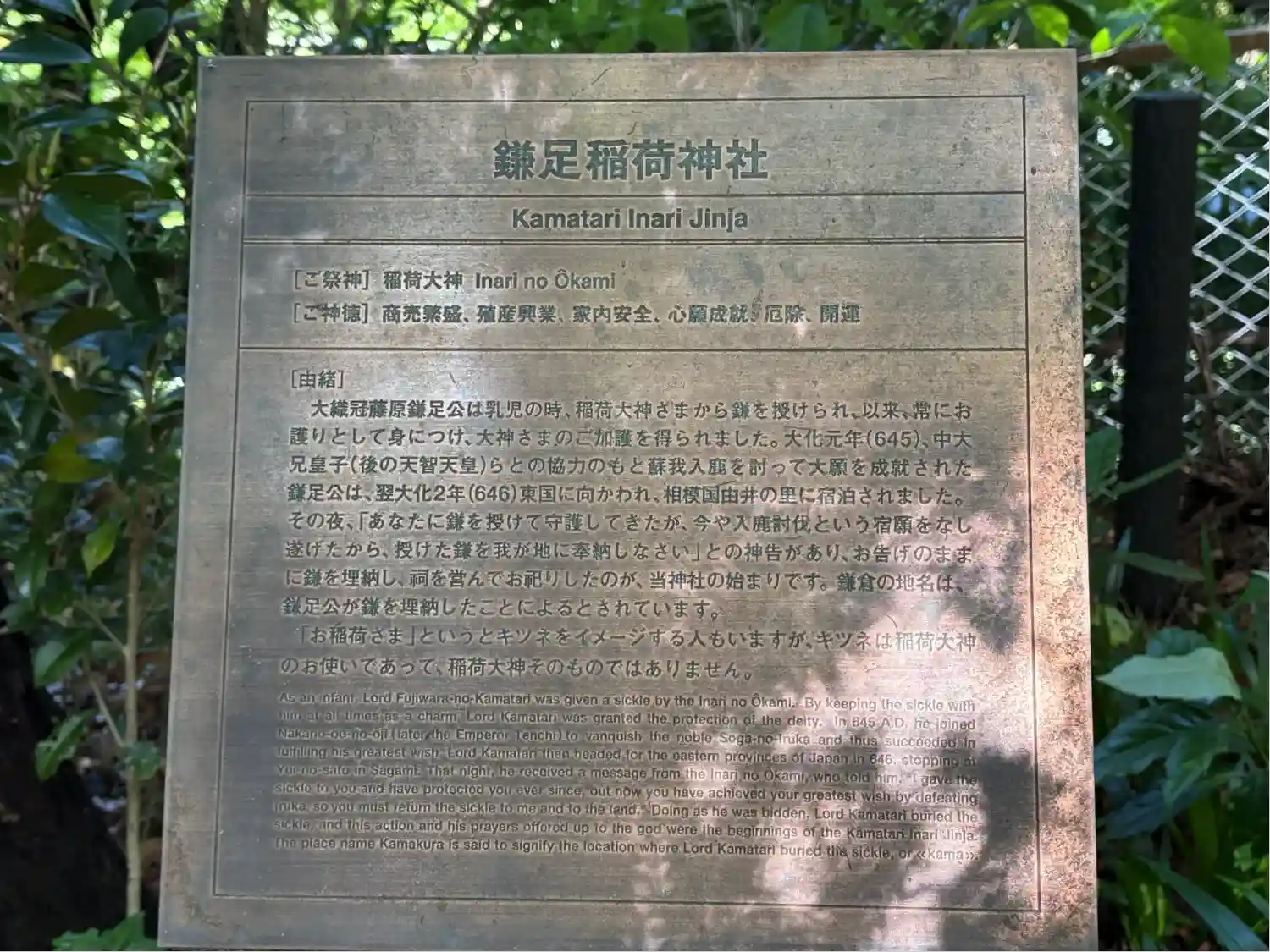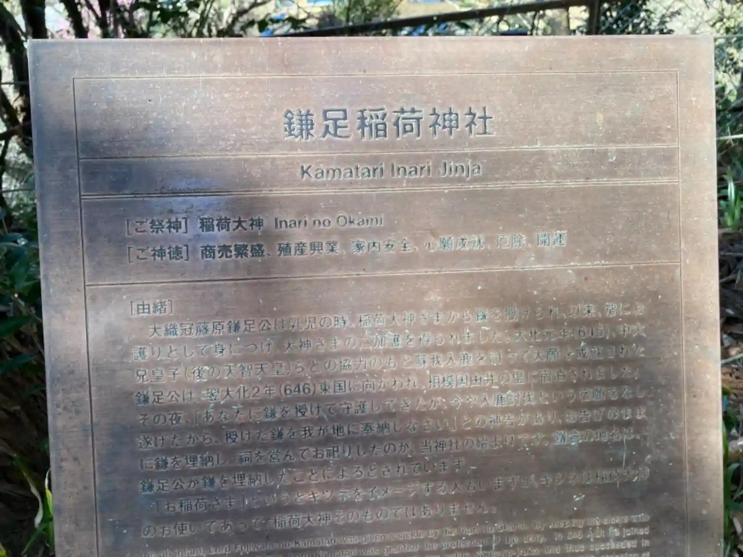 | 名称 | 鎌足稲荷神社(鎌足稲荷社) |