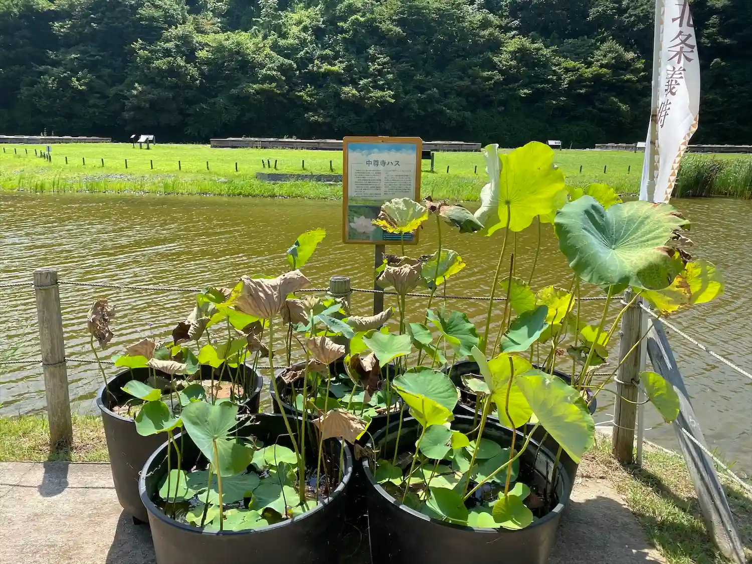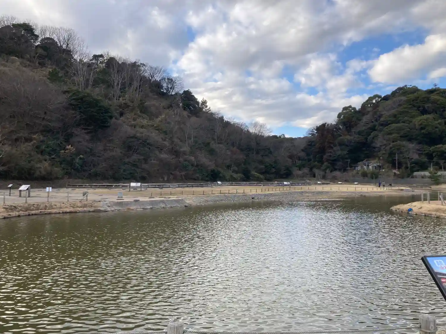 池のほとりの案内板