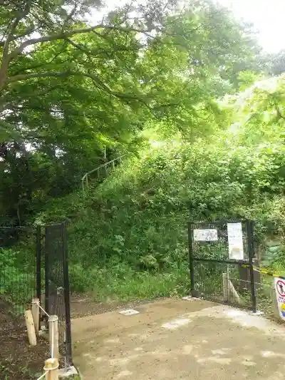中央奥に小さな祠が在り、そこから階段状の道が山の上方へ伸びていた。