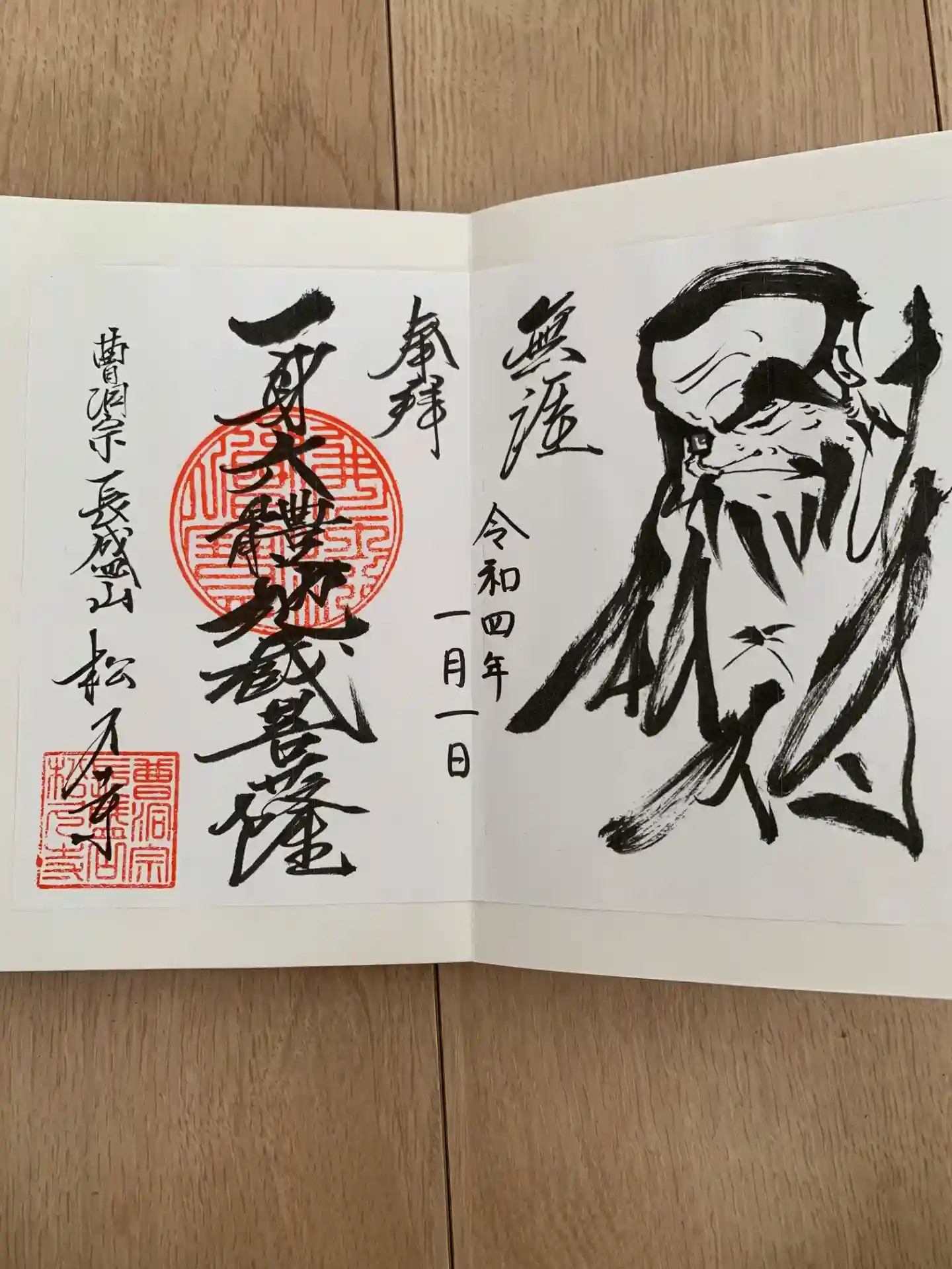 2016年の一般開放以来御朱印の授与も始めたが住職が常駐していない為普段は受付にて書き置きのコピーのみいただける。なお、御朱印は絵入りのA4サイズほどである。住職の滞在中は御朱印帳に直接書いていただける。お布施(御朱印の代金)は500円。