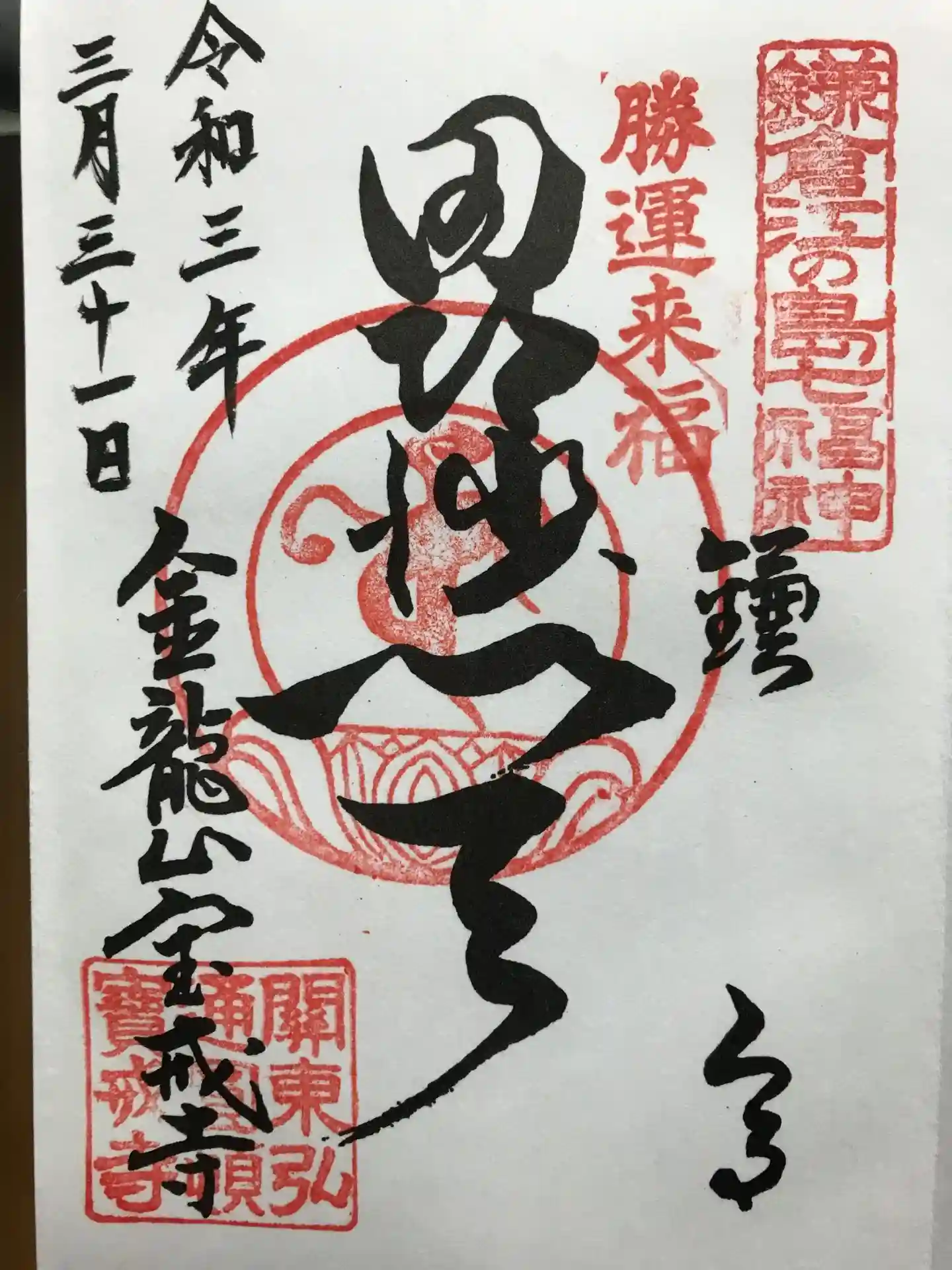 周るのが途中になっていた鎌倉七福神の御朱印いただきました。