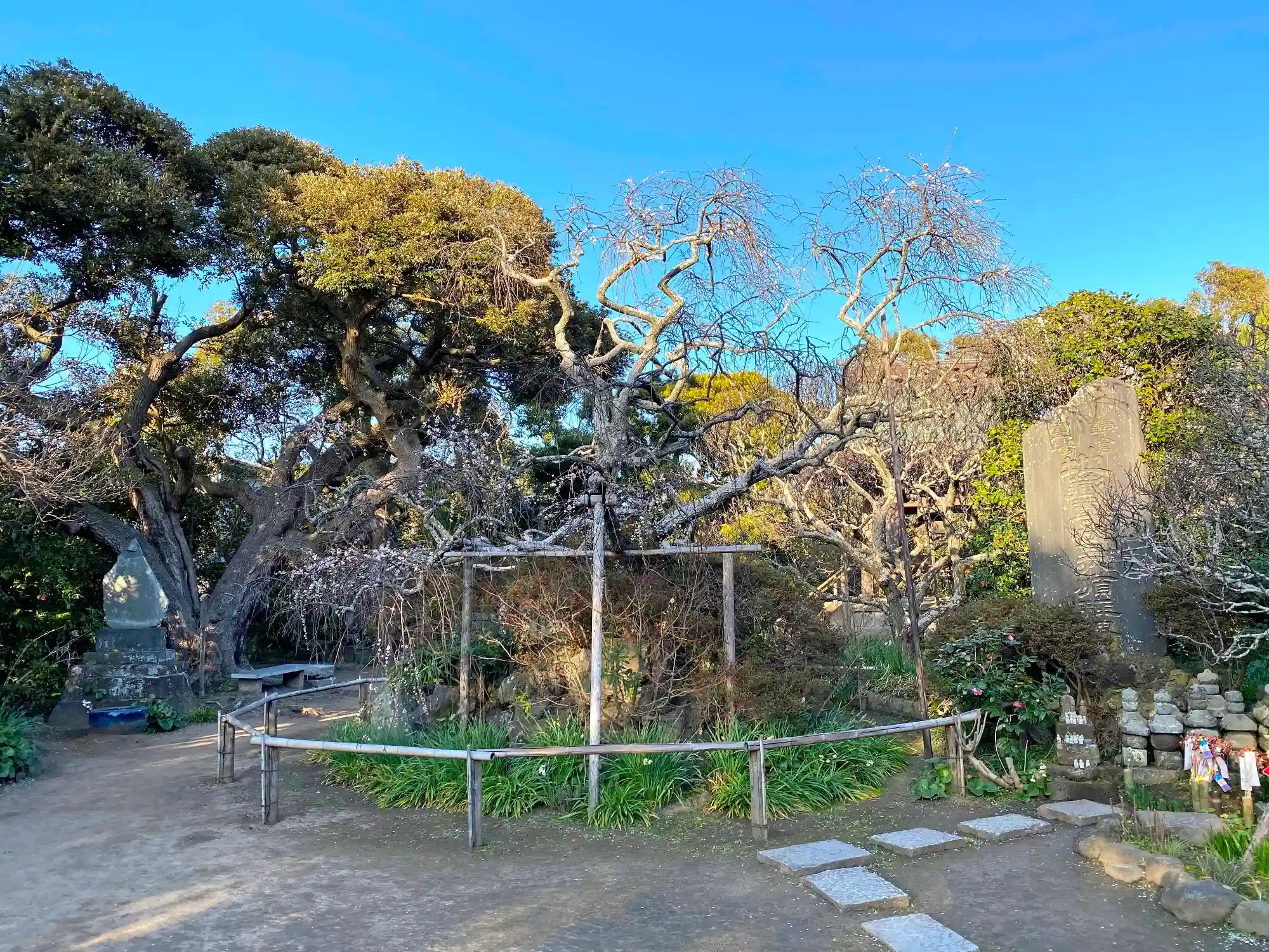 境内左側は植物園のように様々な樹木が植わっている。