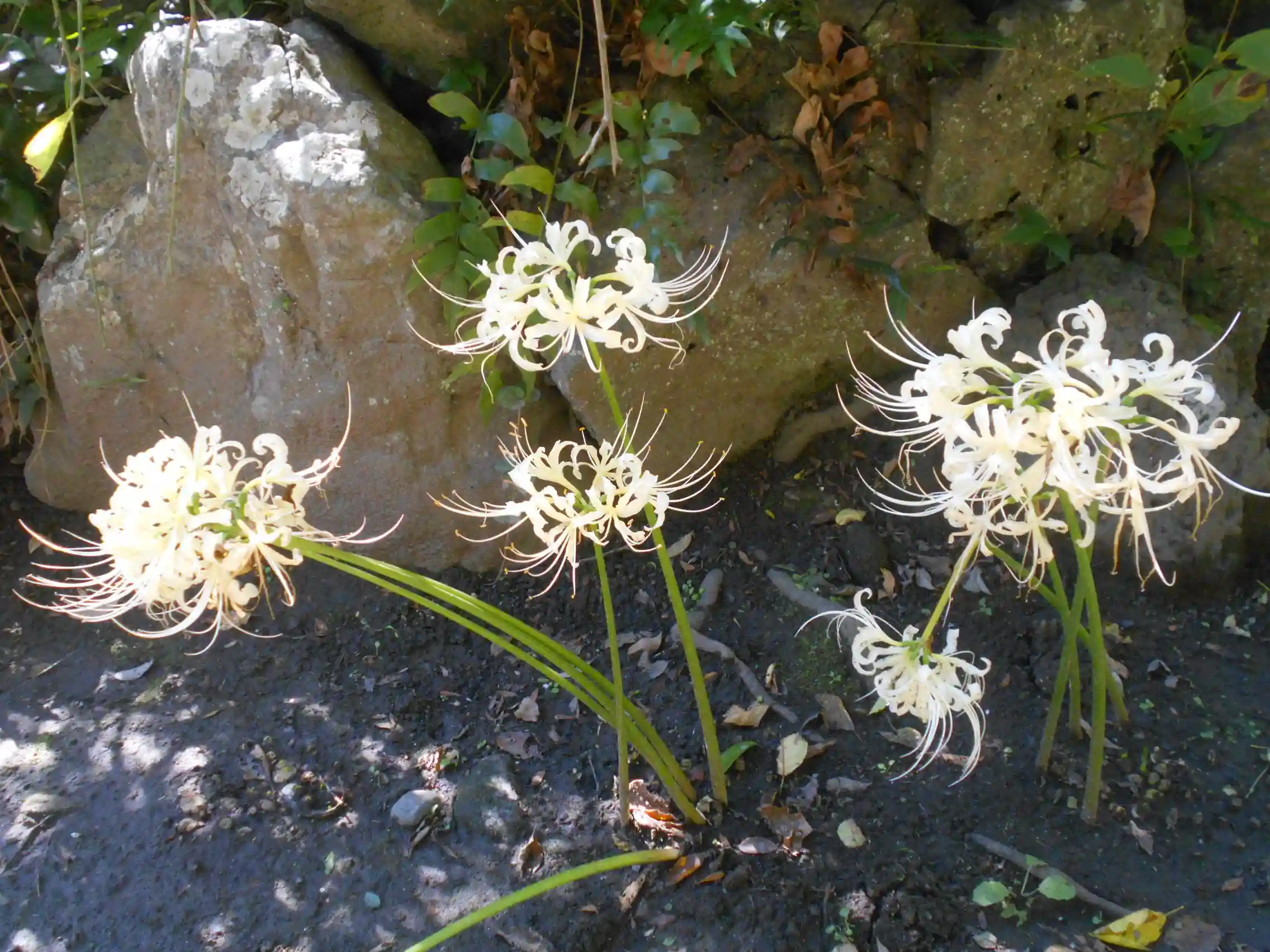 18-2) 枝垂れ梅の木周辺の、白い彼岸花。