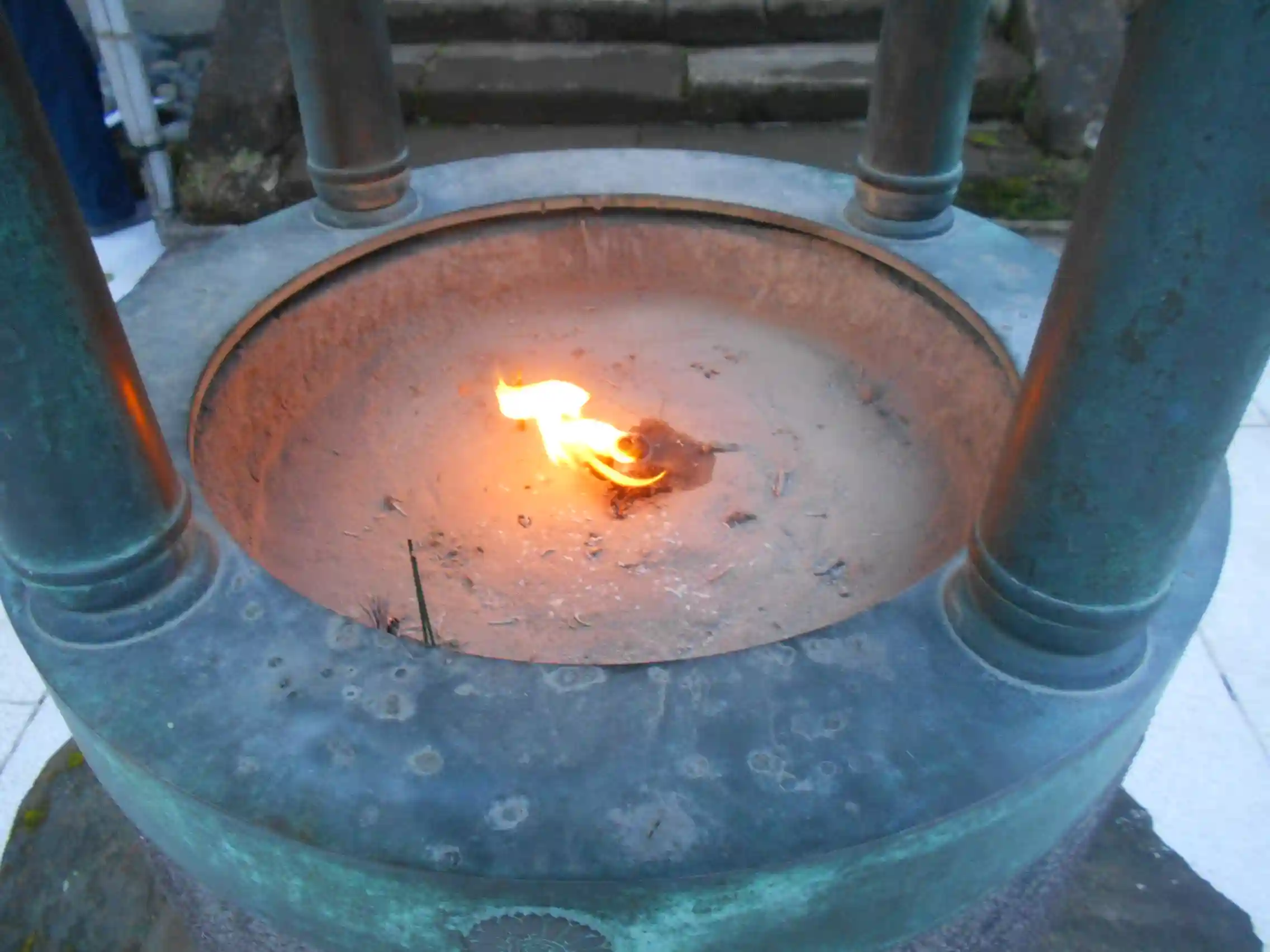 05-2) 香炉の手前側に線香を立てた