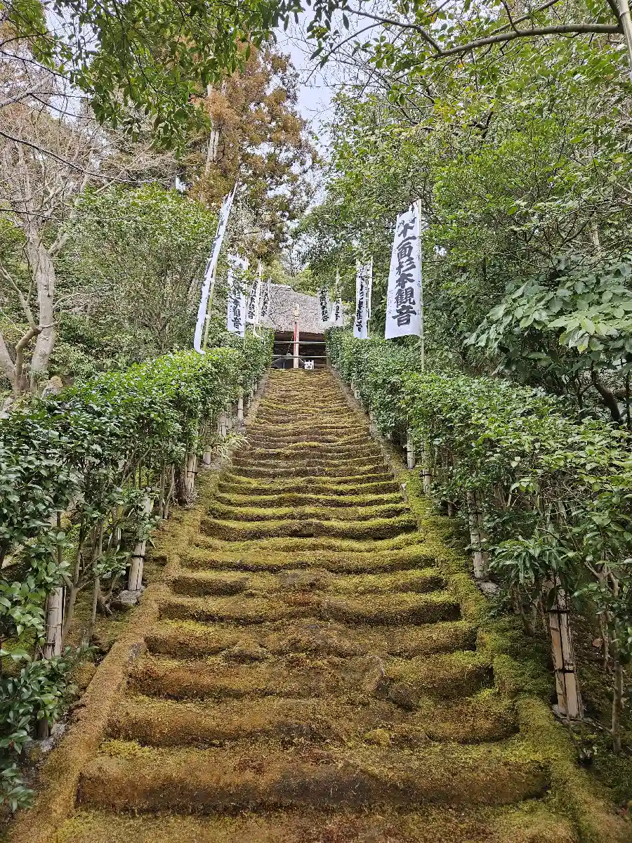 苔の階段がとても素敵です。本堂は本堂内撮影禁止です。観音様の指と繋がっている紐がありました(‐人‐)