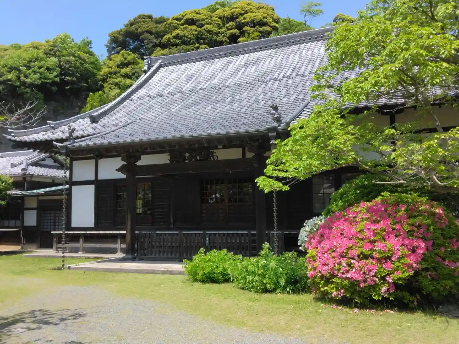 13.04.29 鎌倉「浄光明寺」濃い緑にツツジ映える頃
