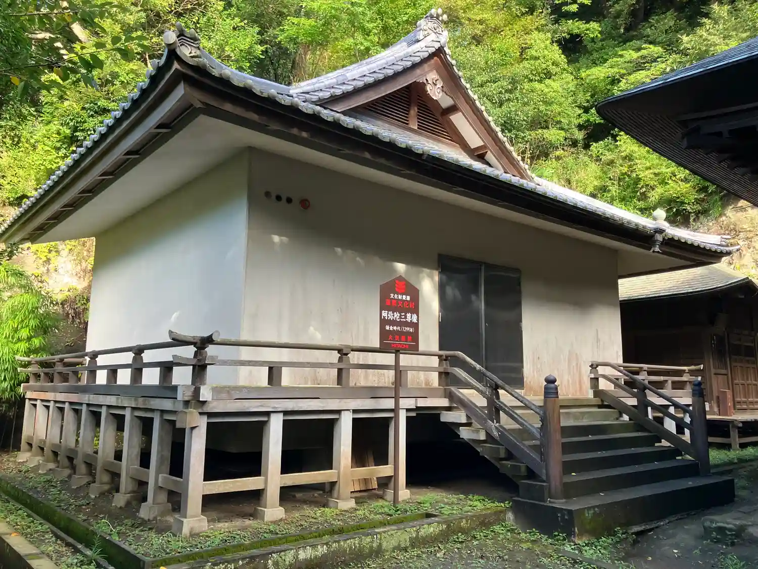 裏山に階段で登っていくと仏殿と収蔵庫があります。