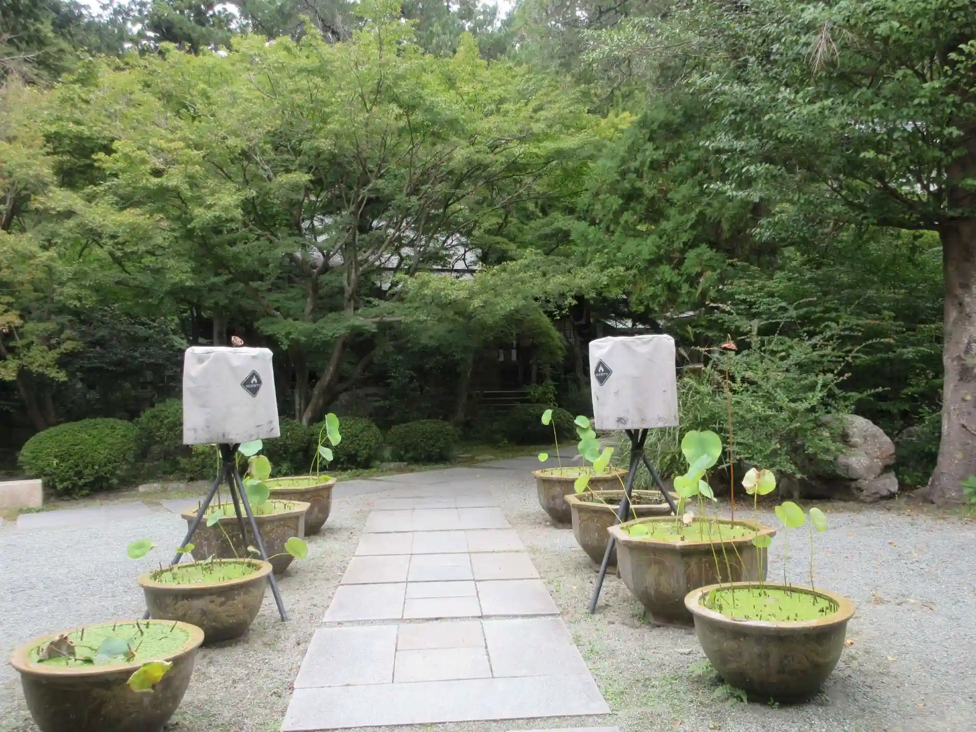 庭にはカエデの葉が青々としていました。