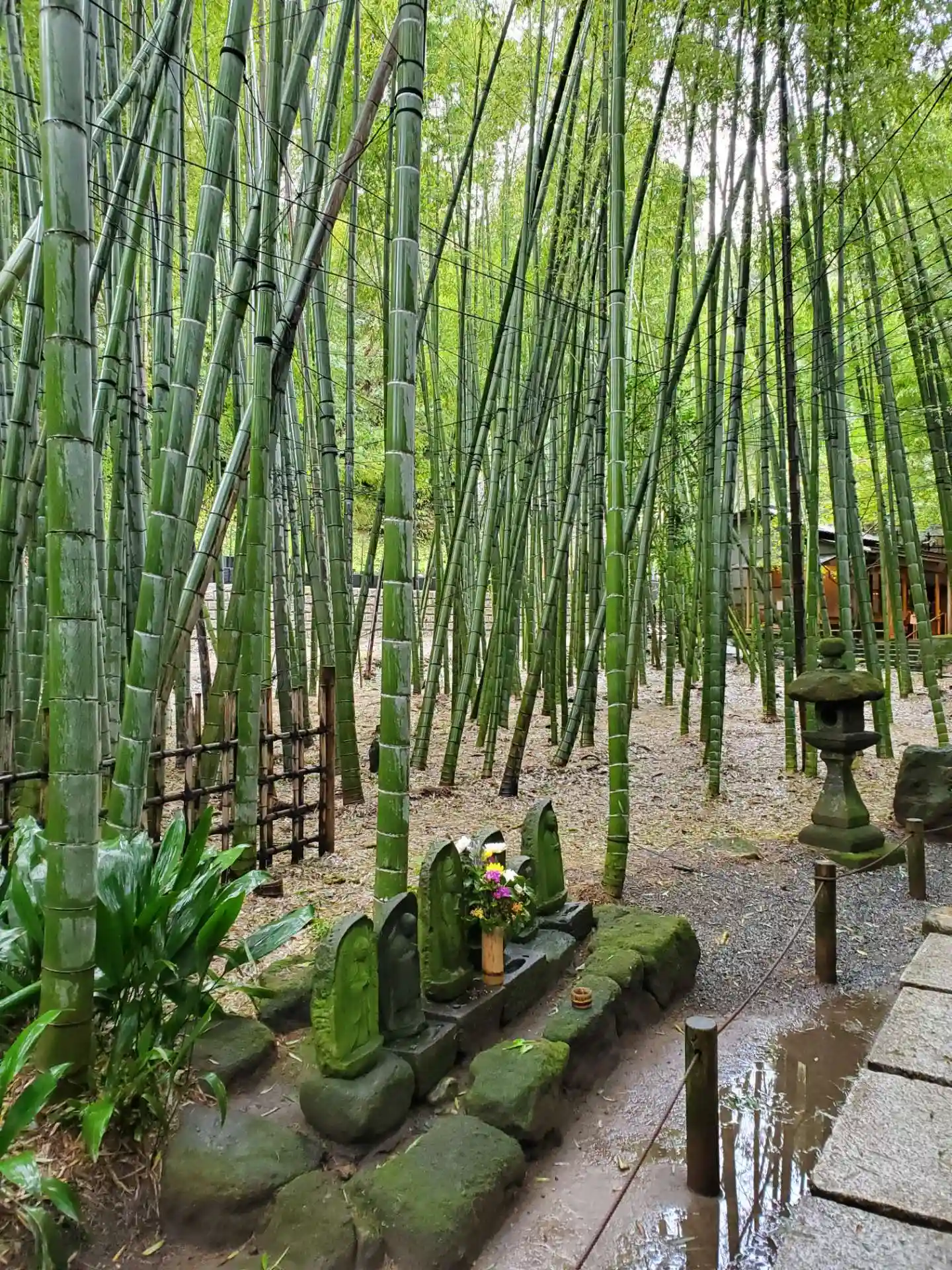 報国寺をお参りしました。竹のお庭が素晴らしかったです。雨が降っていましたのでお庭の苔が輝いて生き生きとしていました。