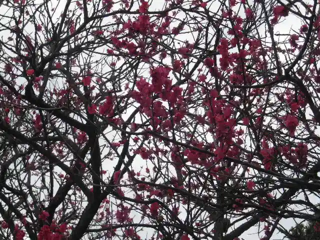 祝うように咲く梅と河津桜。