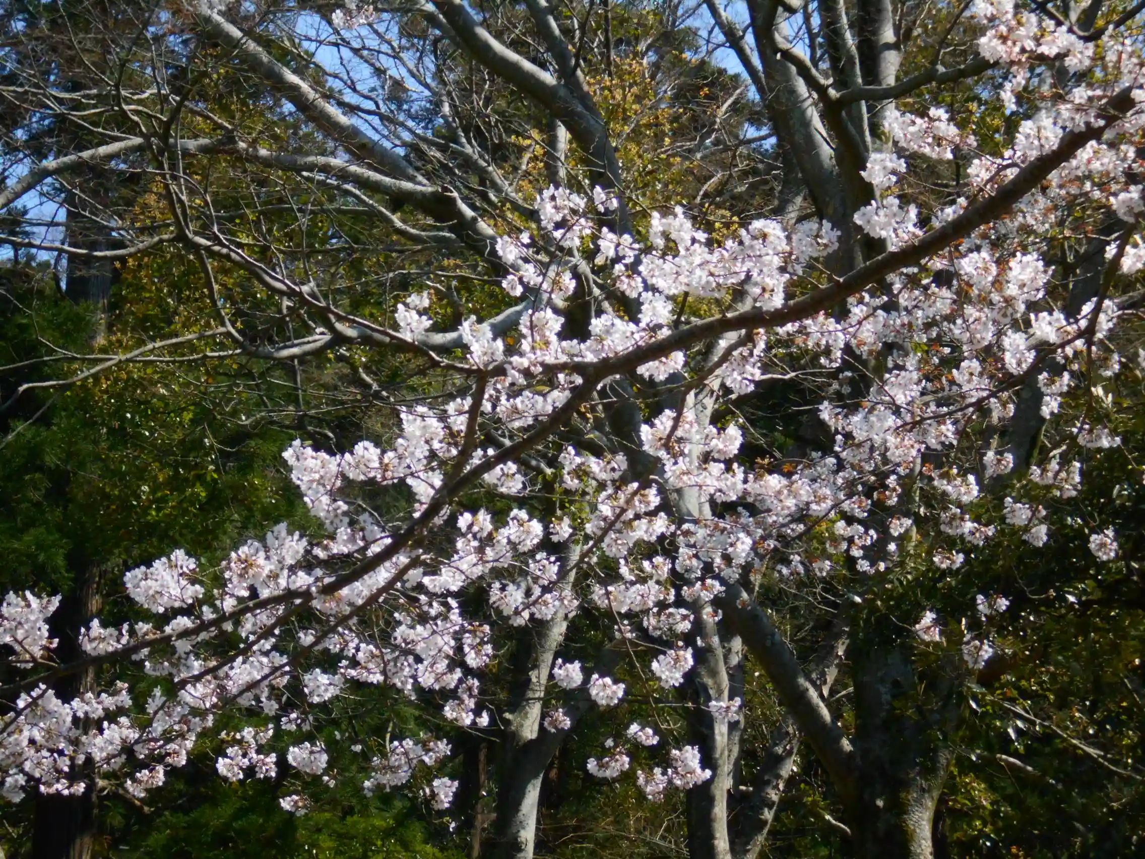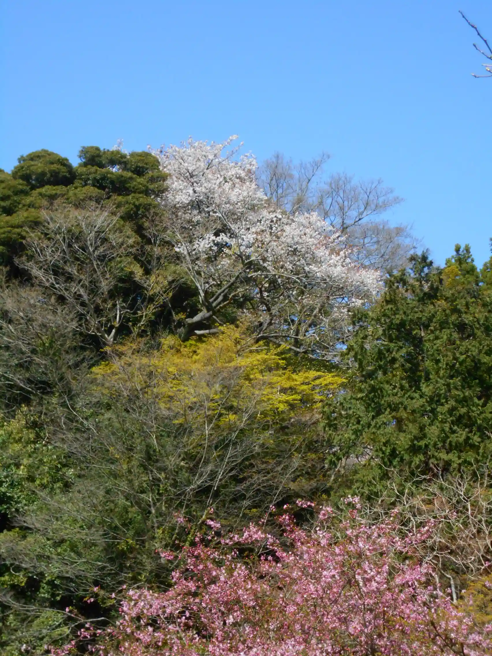 12-2) 本堂前、崖沿いの桜をズームアップ。