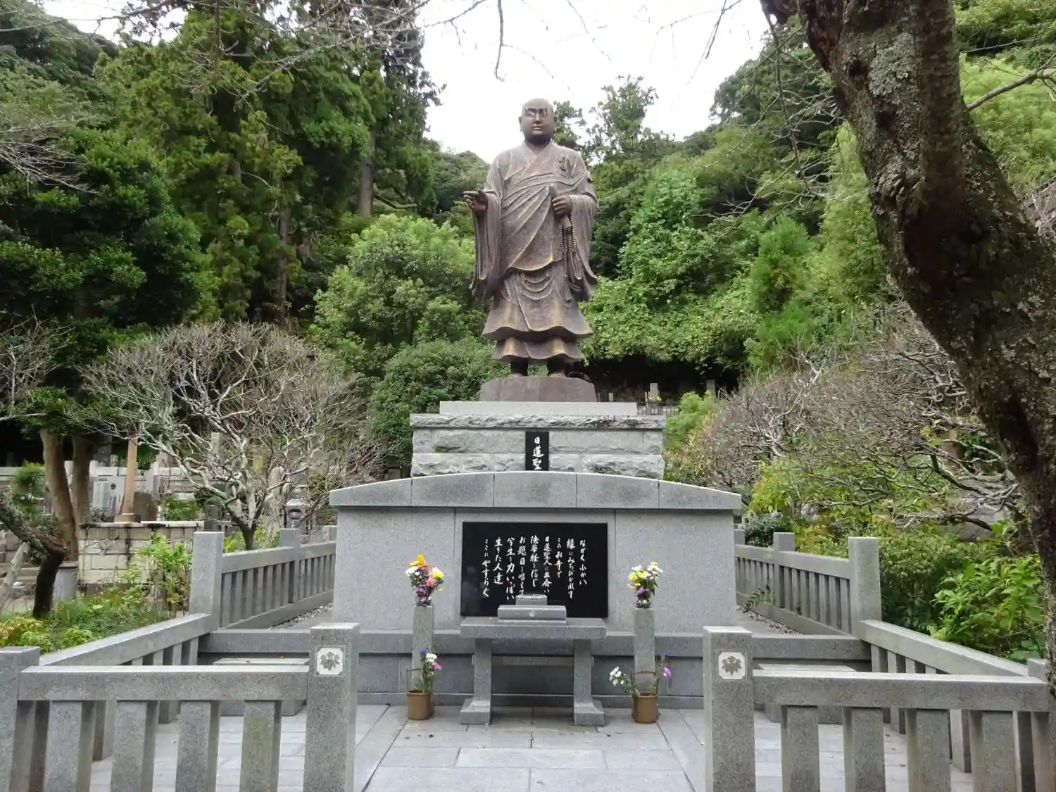 境内左手にある<日蓮聖人像>。