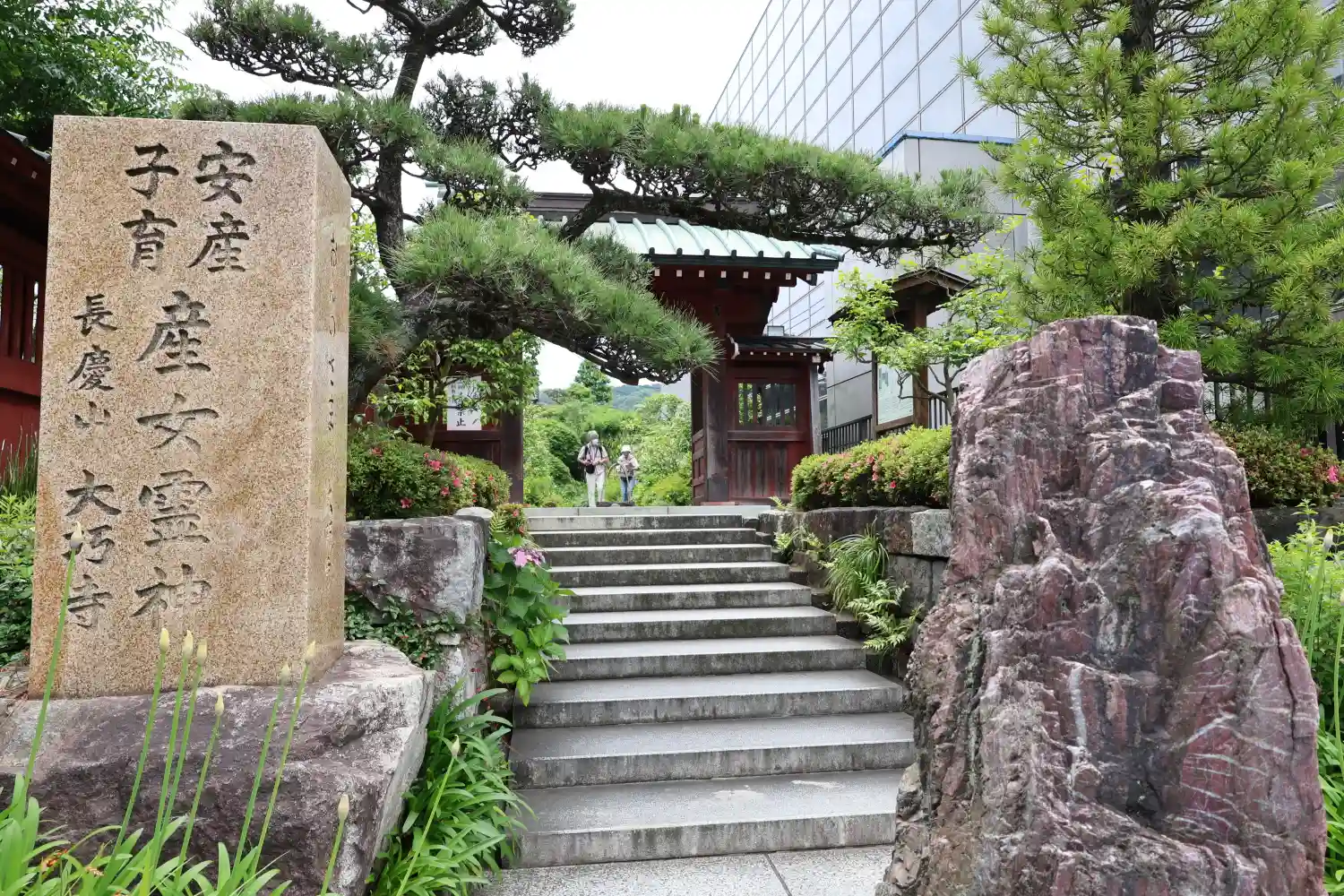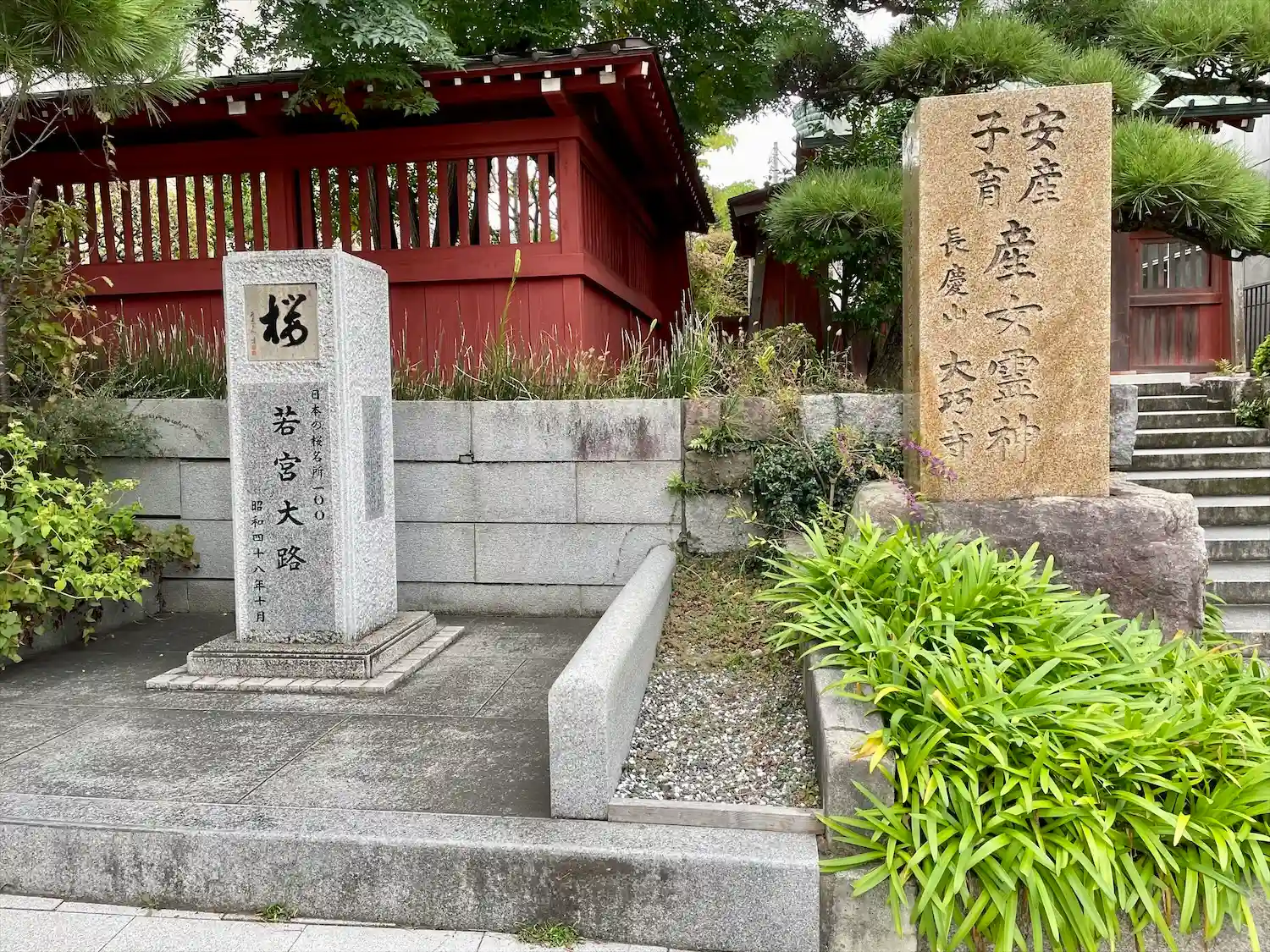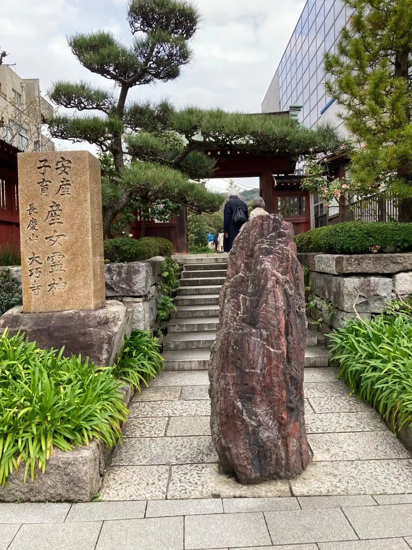 御題目塔。参道