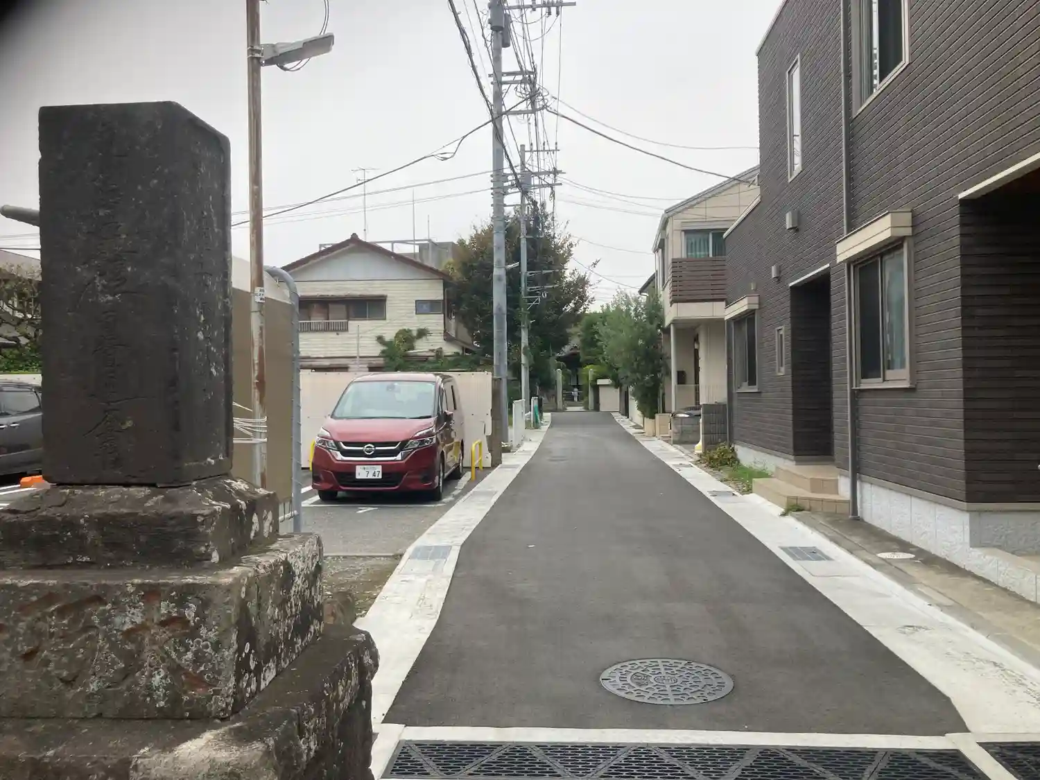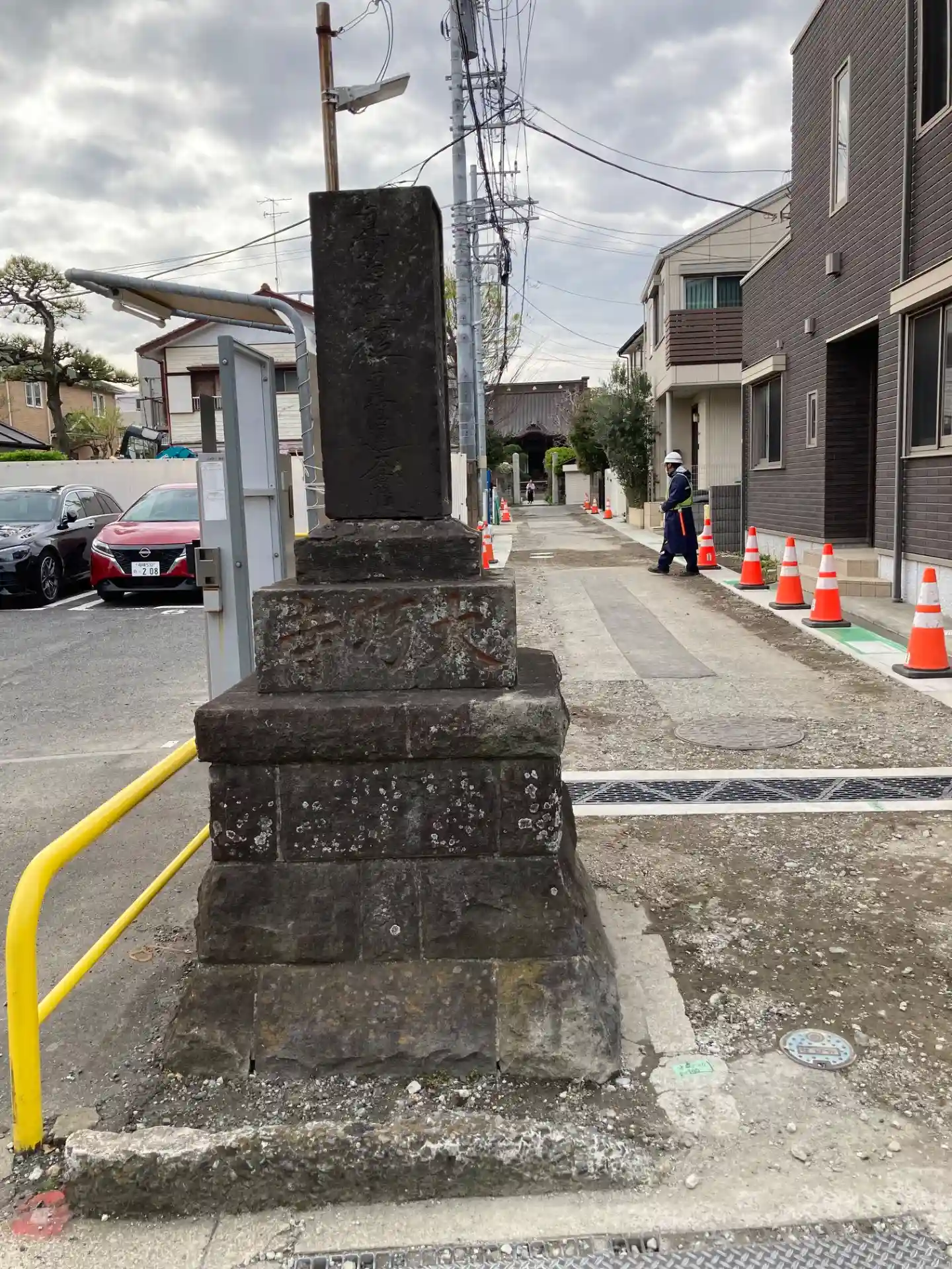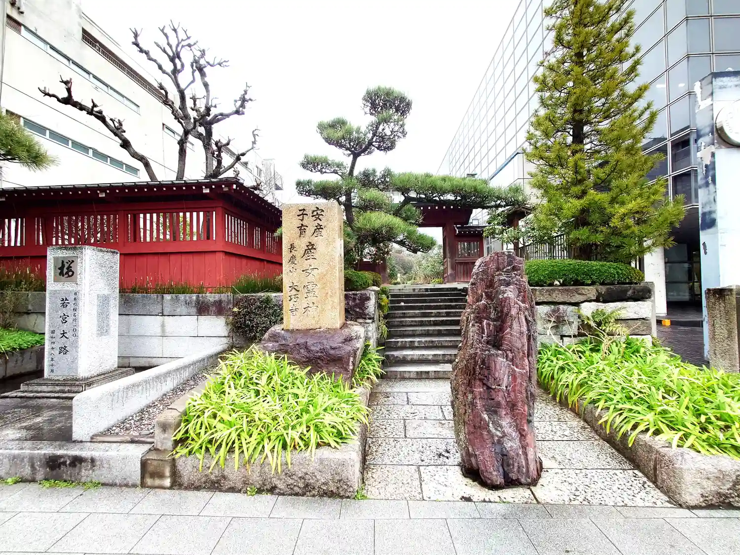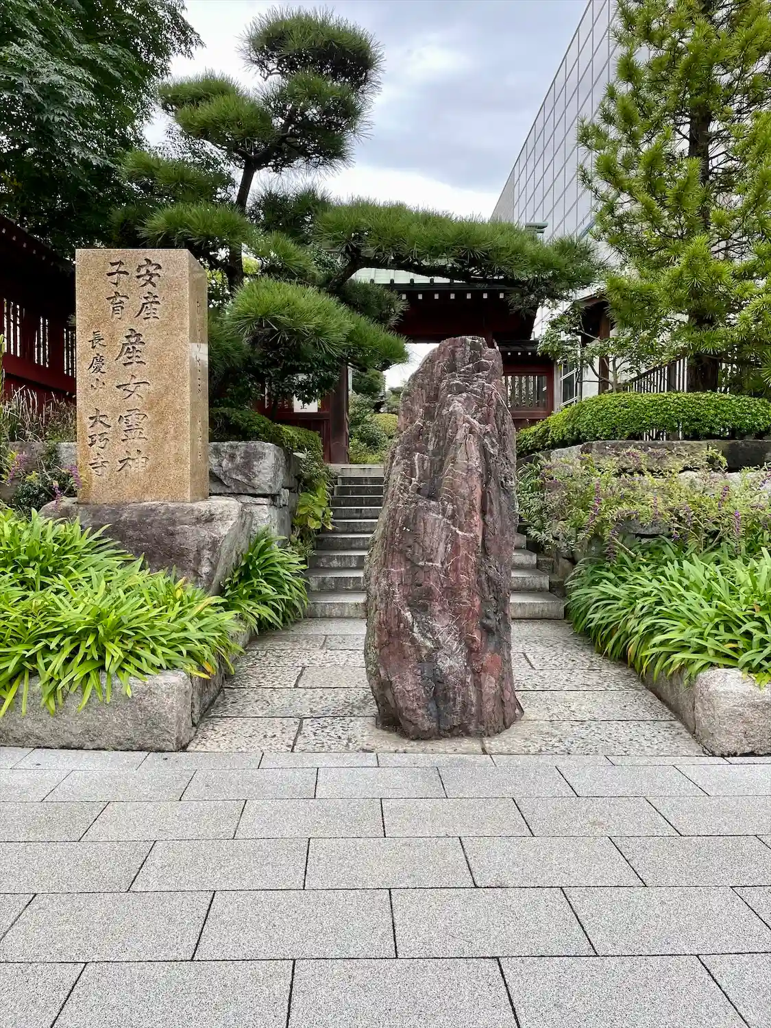 御題目塔。参道