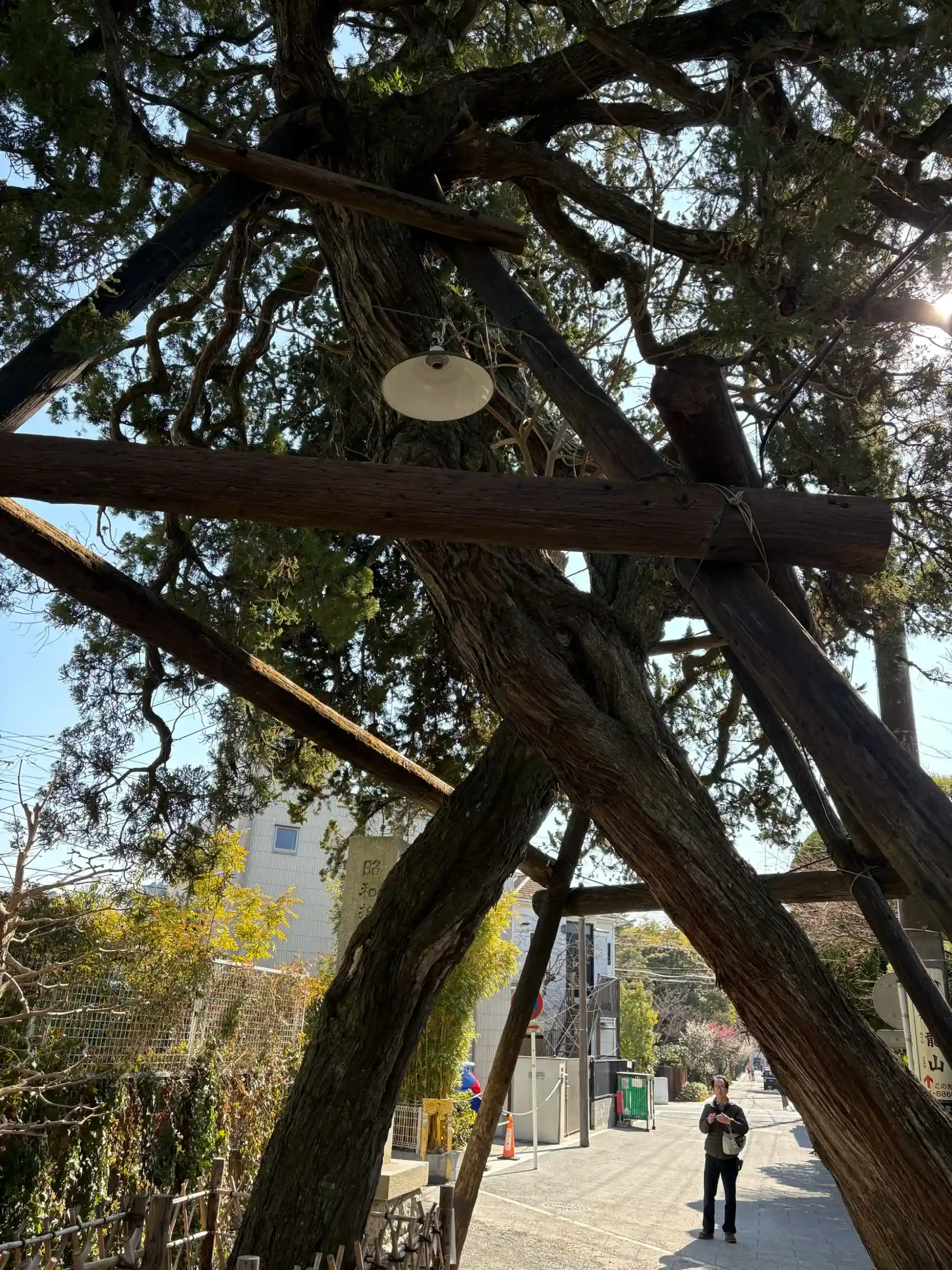 と、その前に参道入口にあるバッテンに重なった珍しい杉の木をご紹介。