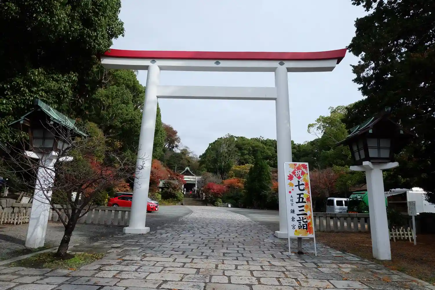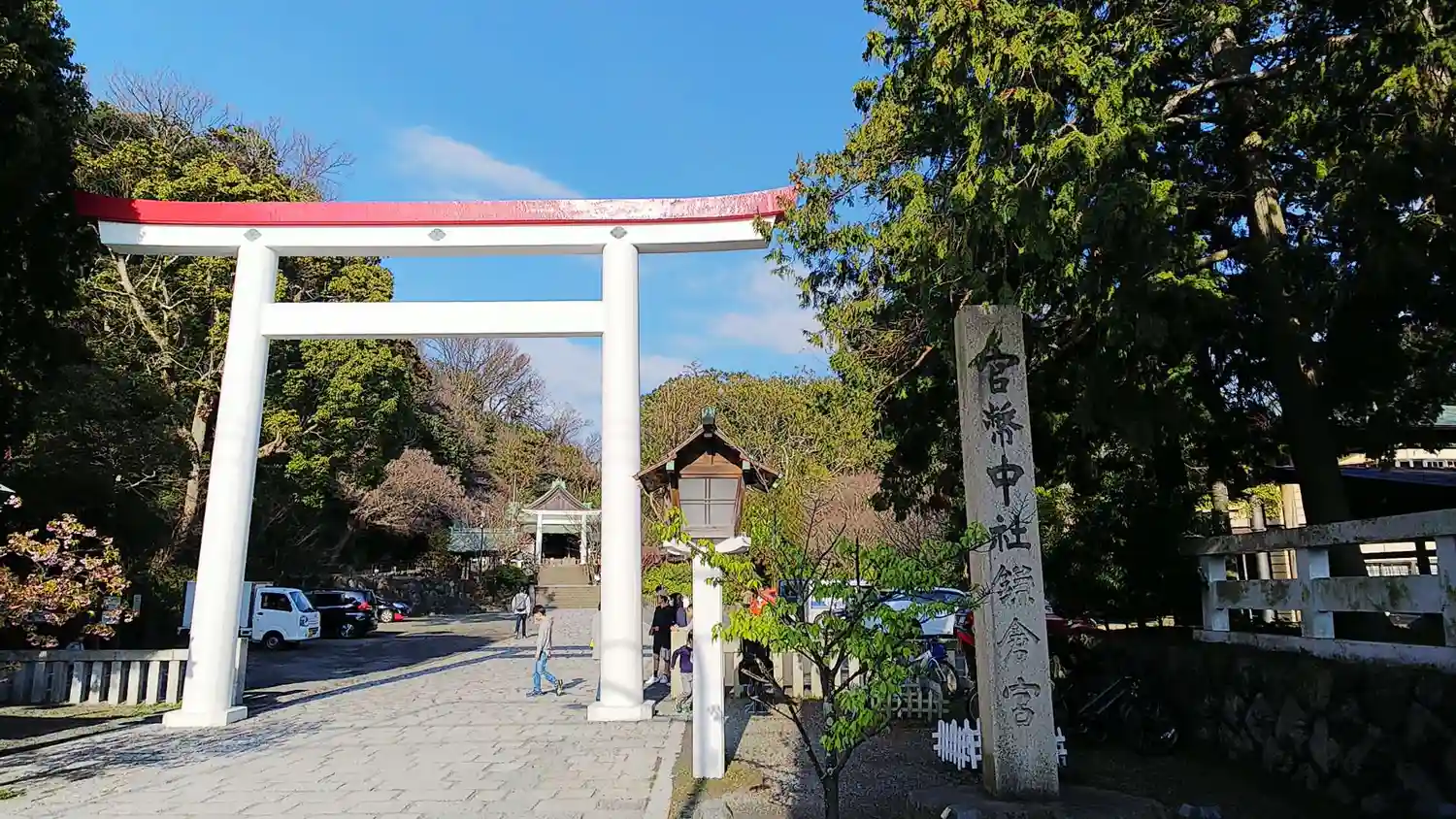 実は赤と白の鳥居が珍しい鎌倉宮の入り口です。赤と白って初めて見ました。