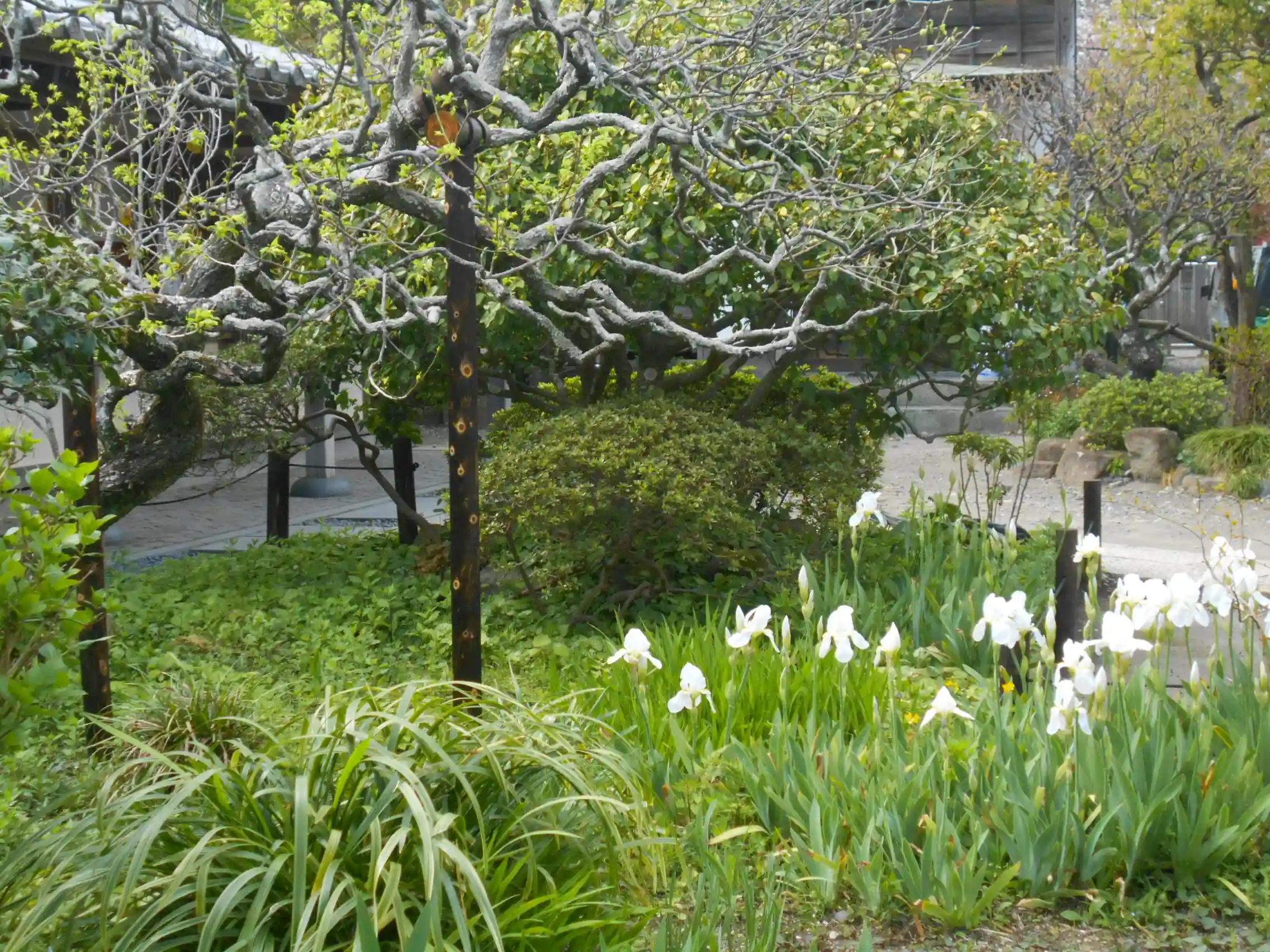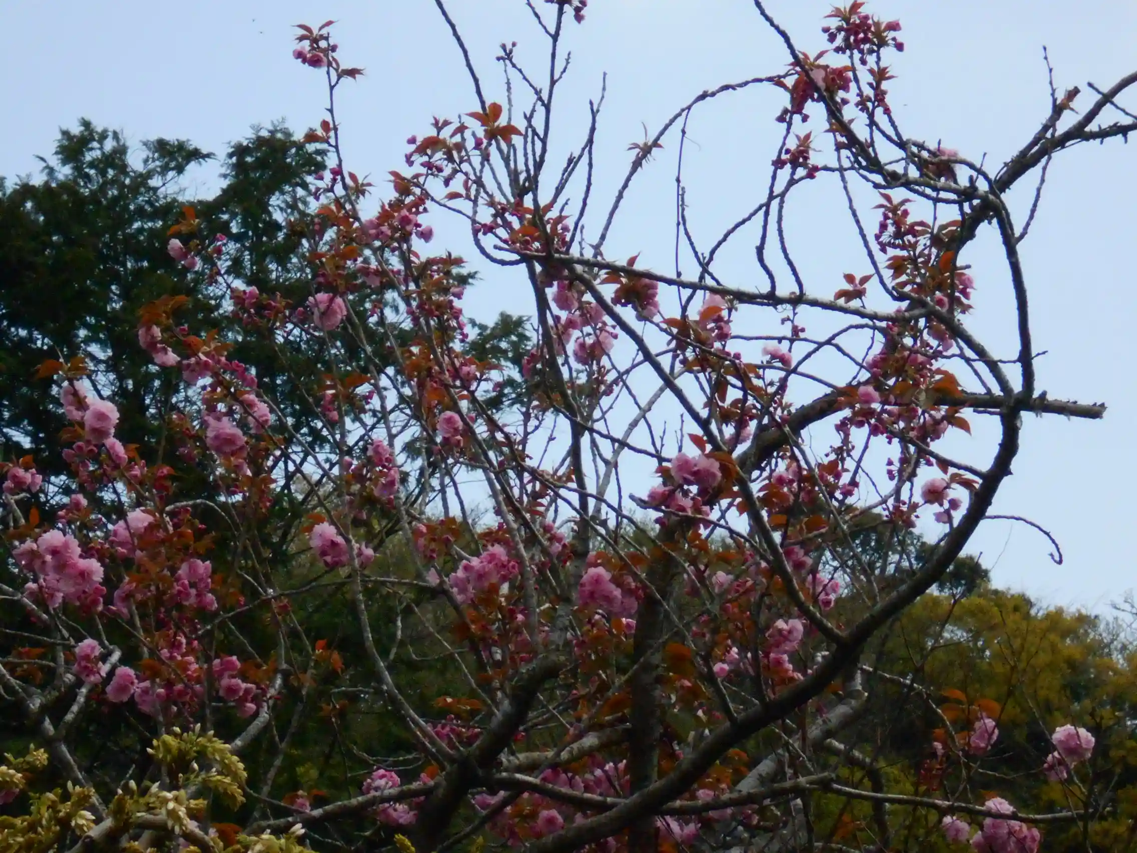 06-2) ’ 八重一重咲分け桜 ’ の開花を、宝物庫方向で。