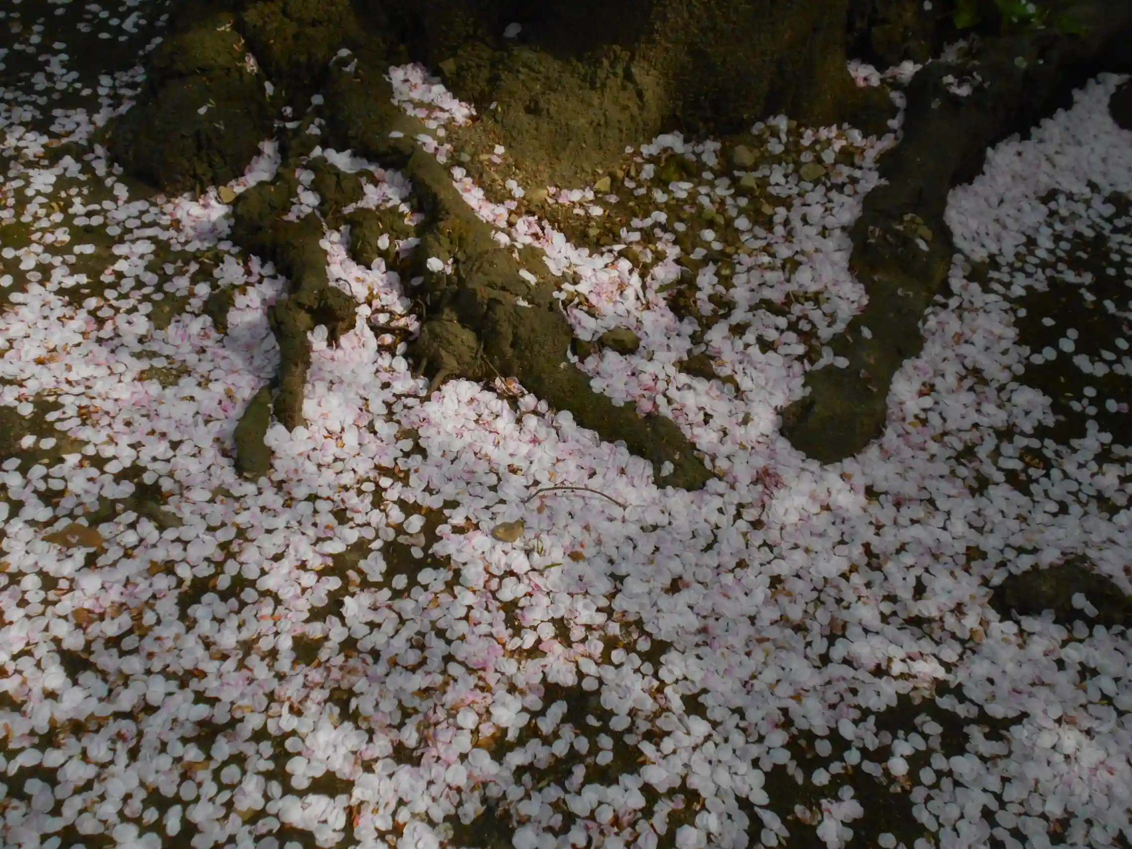 01-2) 根本に散った桜の花びら。
