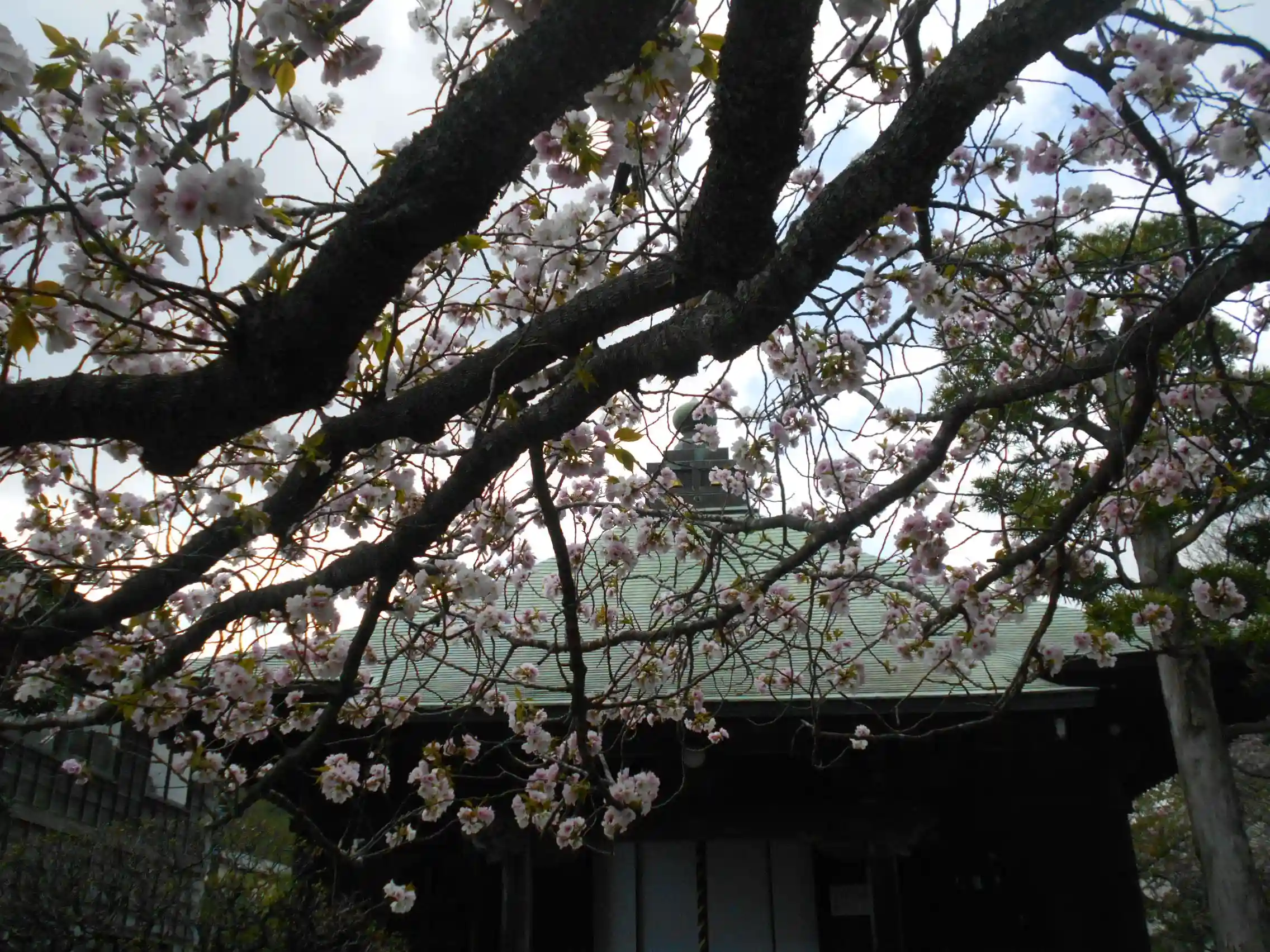 14-2) 向かって本堂右、立ち入り不可区域の桜をズームアップ。
