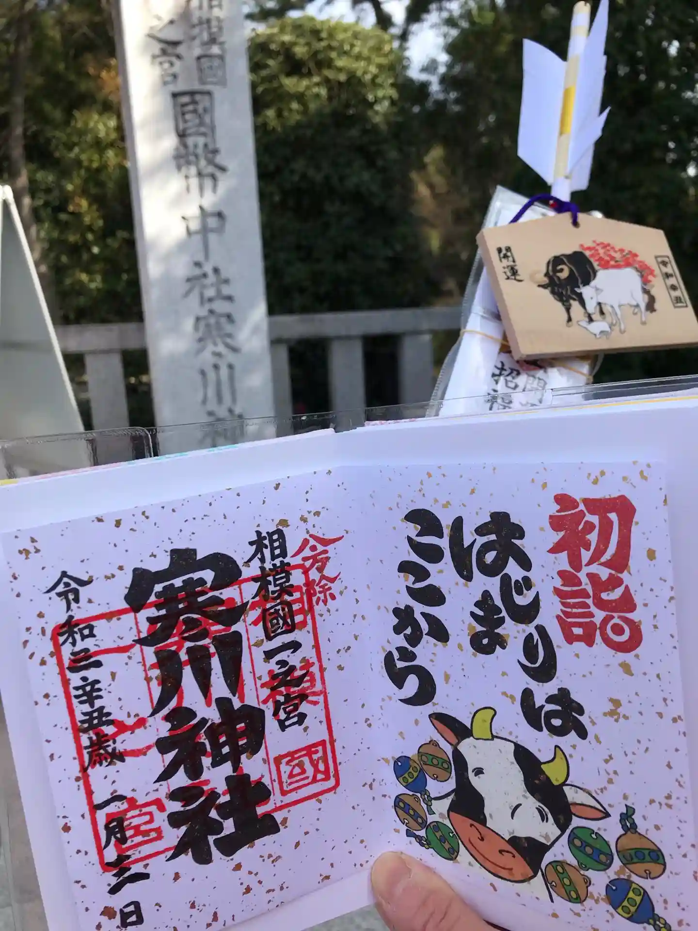 初詣は寒川神社に。お守りや破魔矢の売り場も沢山有り、スムーズに購入できました。こんな状況の中、露店も沢山出ていてビックリ。